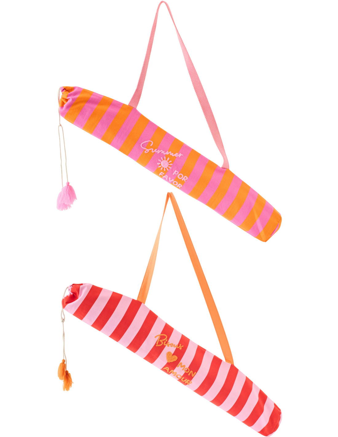 Lot de 2 Tapis de plage style riviera italienne Rectangulaire 70x150 Propylène Rose Orange Rouge Motif rayures La Spiaggia