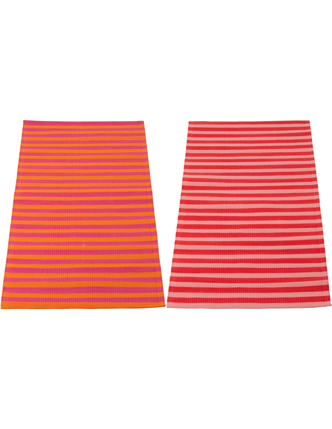 Lot de 2 Tapis de plage style riviera italienne Rectangulaire 70x150 Propylène Rose Orange Rouge Motif rayures La Spaggia
