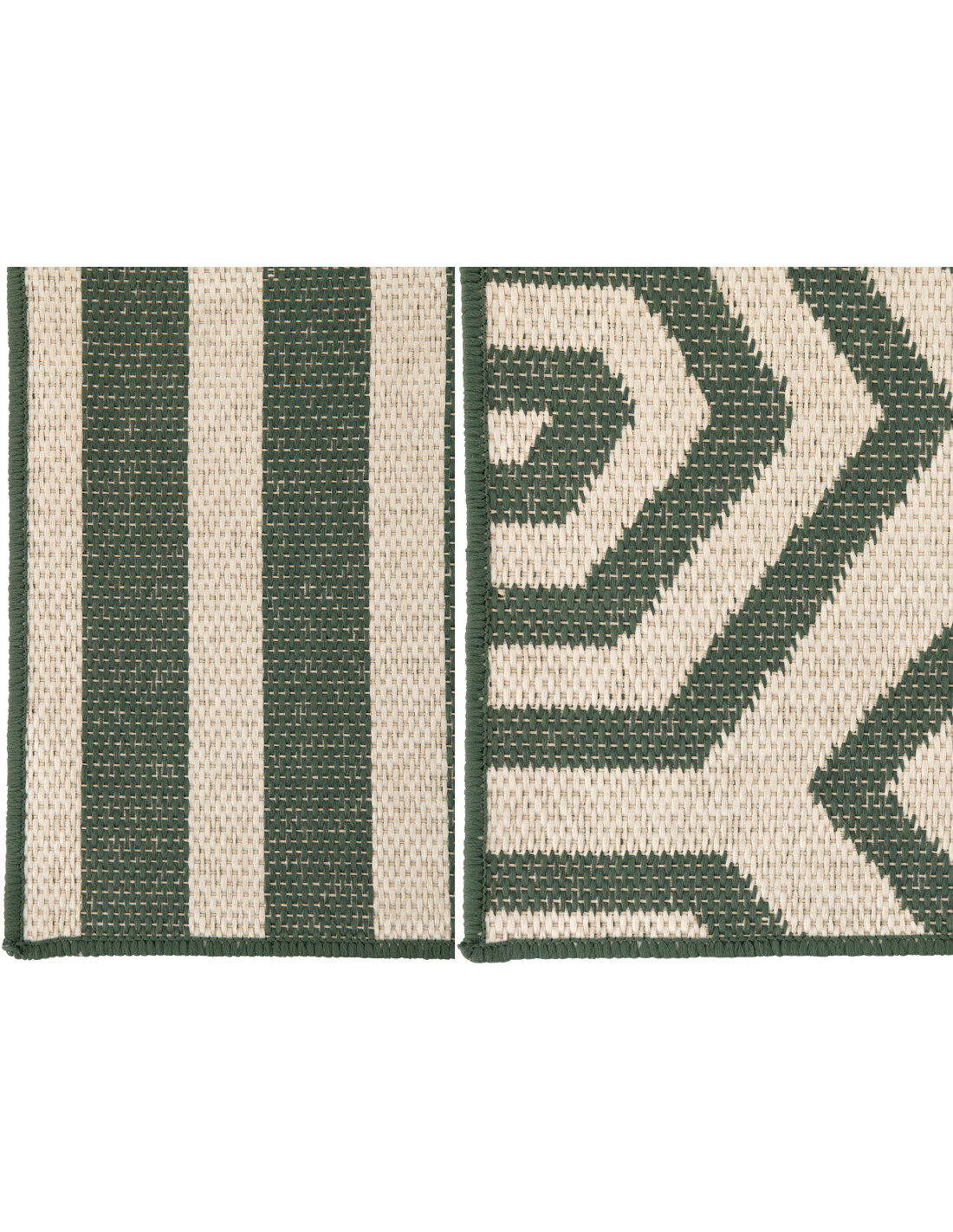 Lot de 2 Tapis extérieurs design Rectangulaire 120x170 Polypropylène Vert foncé Blanc Motif spirales & lignes Méditerrana