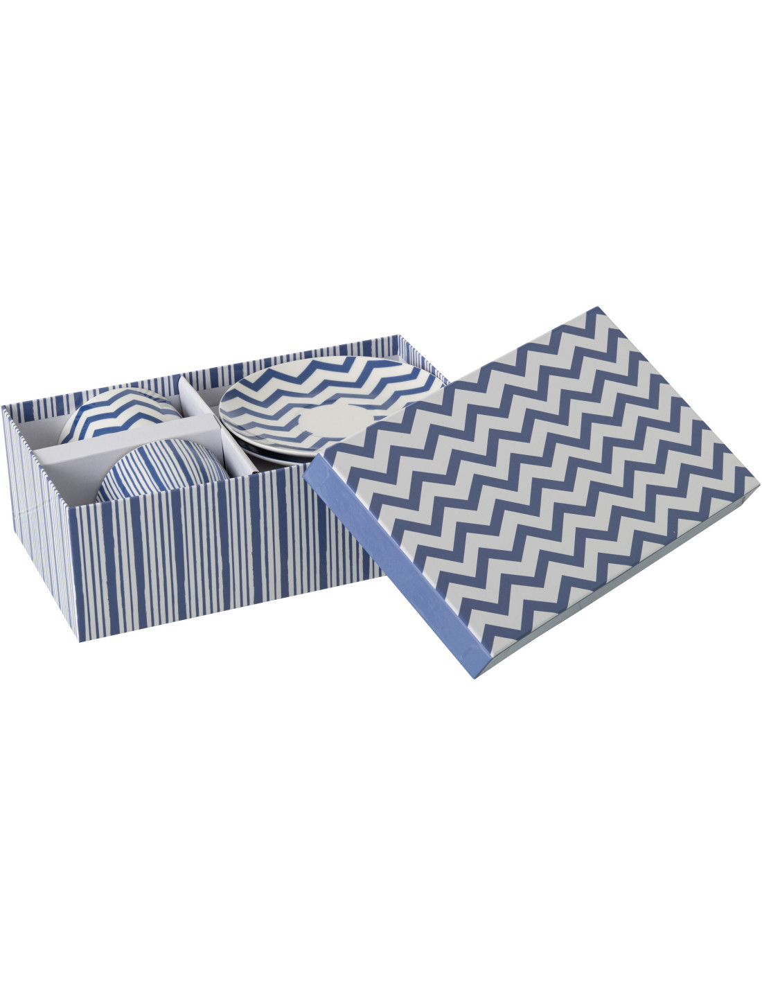 Lot de 2 Tasses bord de mer Porcelaine Bleu Blanc Motif lignes Ondeona