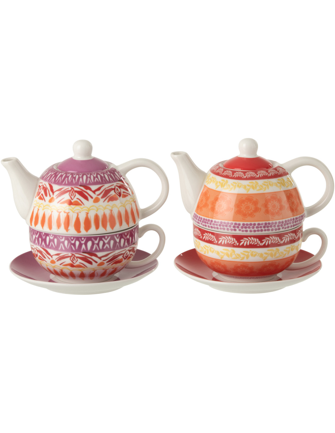 Lot de 2 théières individuelles Solea avec tasse et sous-tasse en céramique violet et rouge