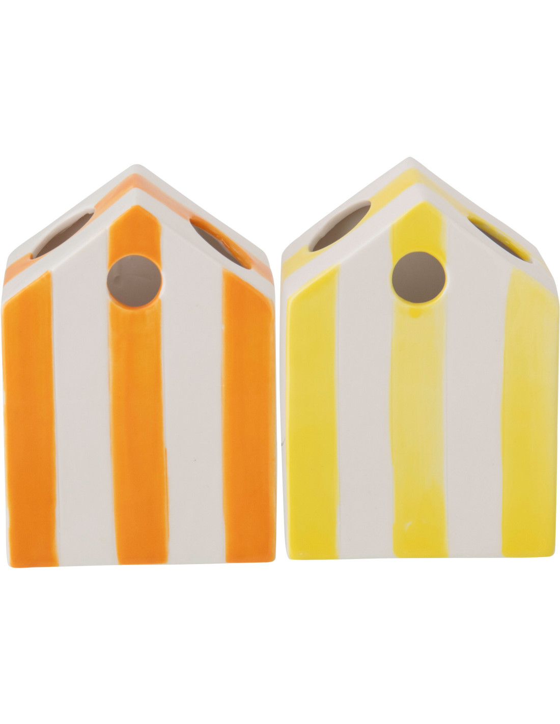 Lot de 2 Vases design Cabines de plage H 14 cm Porcelaine Orange Jaune Blanc Motif rayures Vrolijk