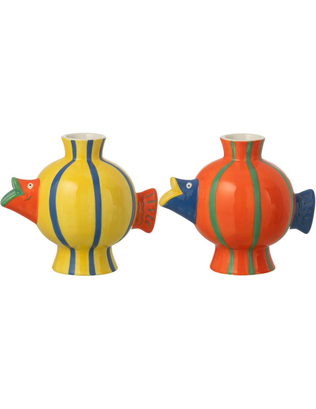 Lot de 2 Vases design pop tropical Poissons Boule H 17 cm Dolomite Multicolore Motif rayures Cariba