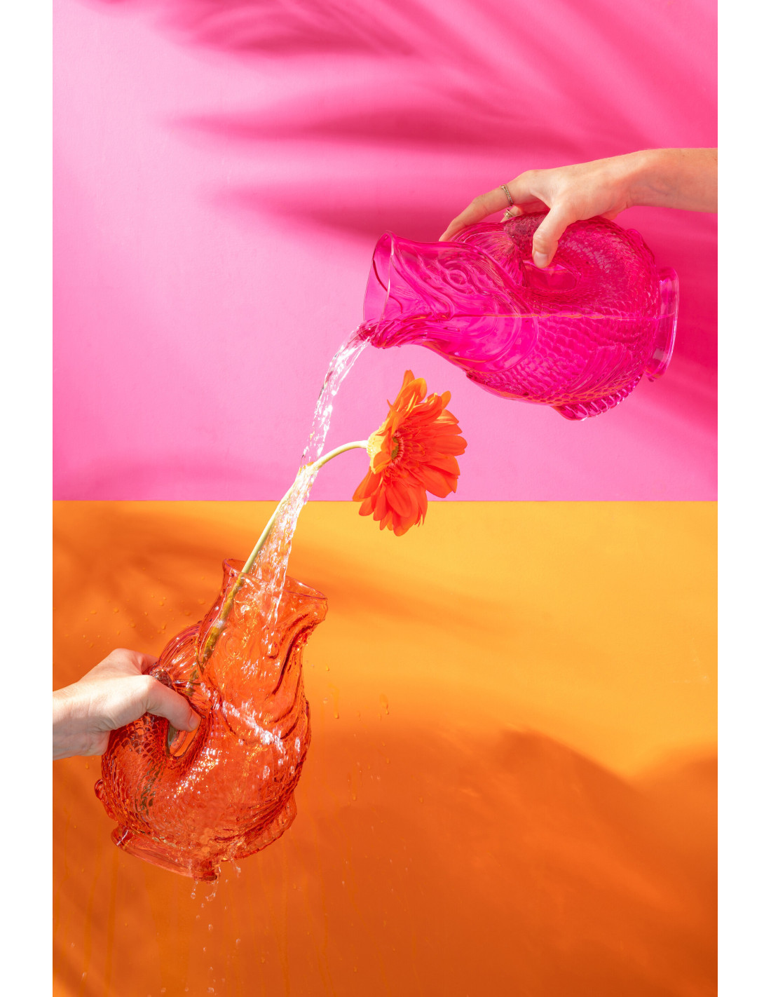 Lot de 2 Vases originaux Poissons H 24 cm Verre Rose Orange Oceanio