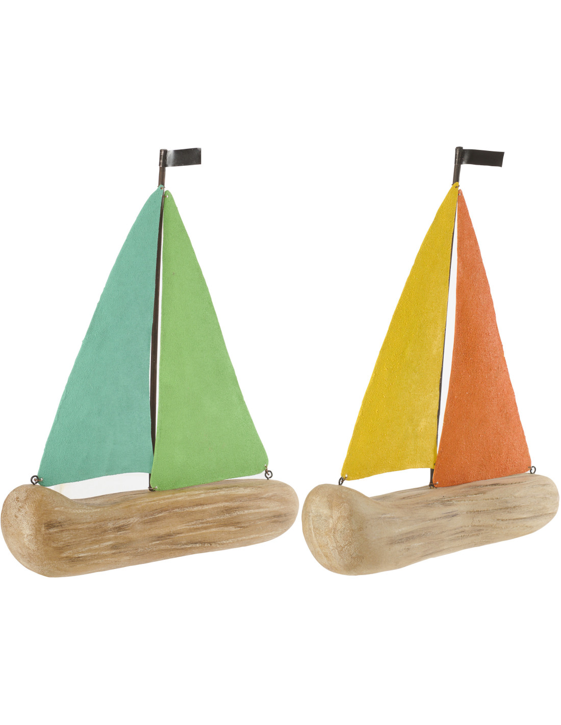 Lot de 2 Voiliers déco bord de mer 25 cm Bois de paulownia Naturel Métal Regatino
