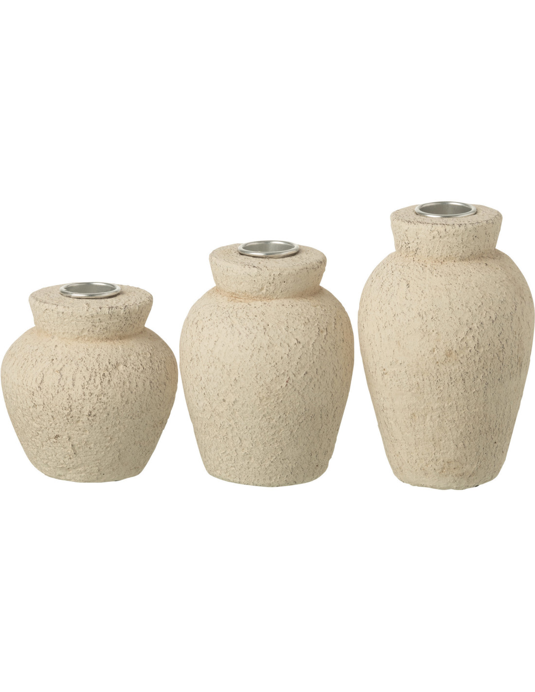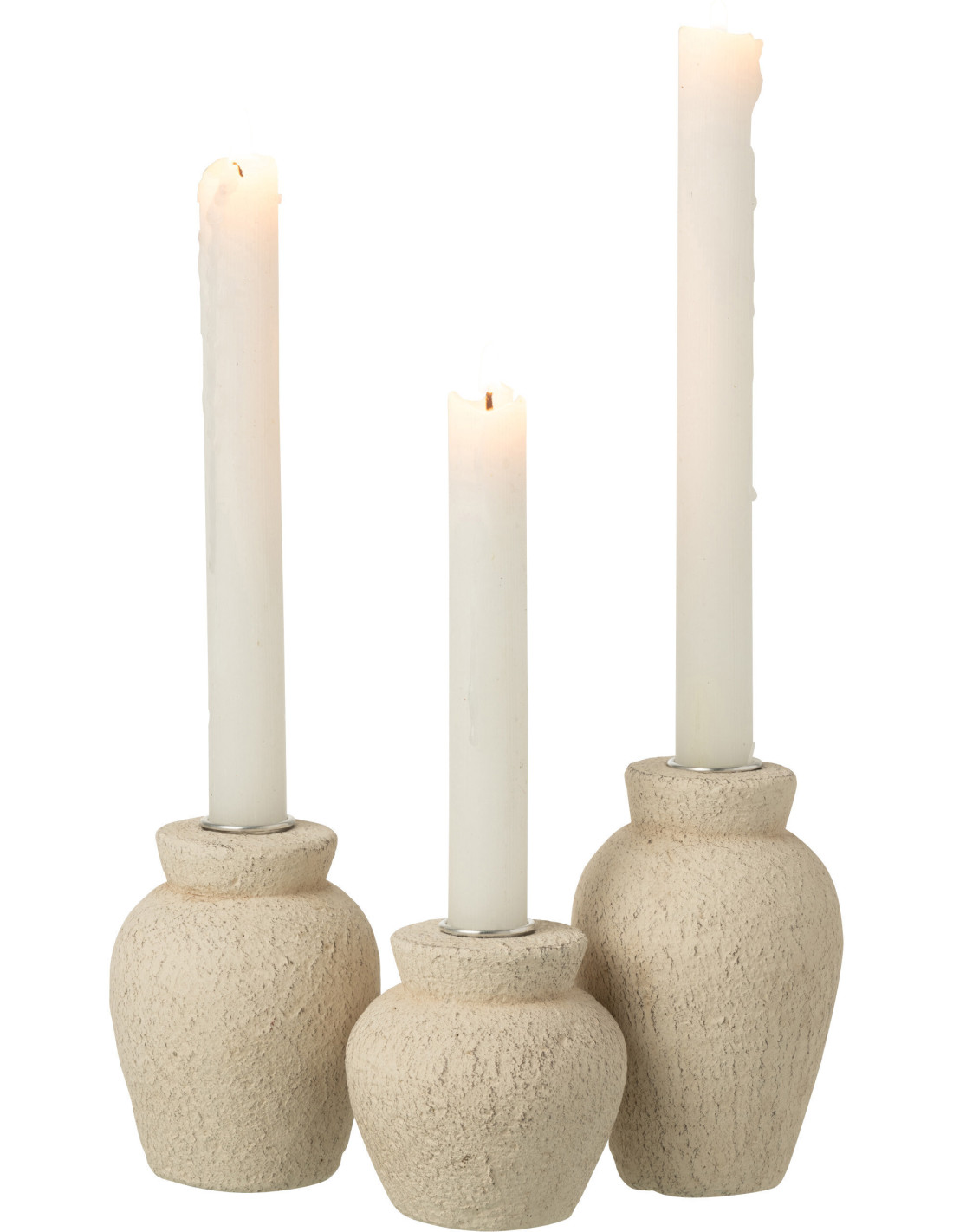 Lot de 3 Bougeoirs Wabi-sabi Ciment Beige Norali