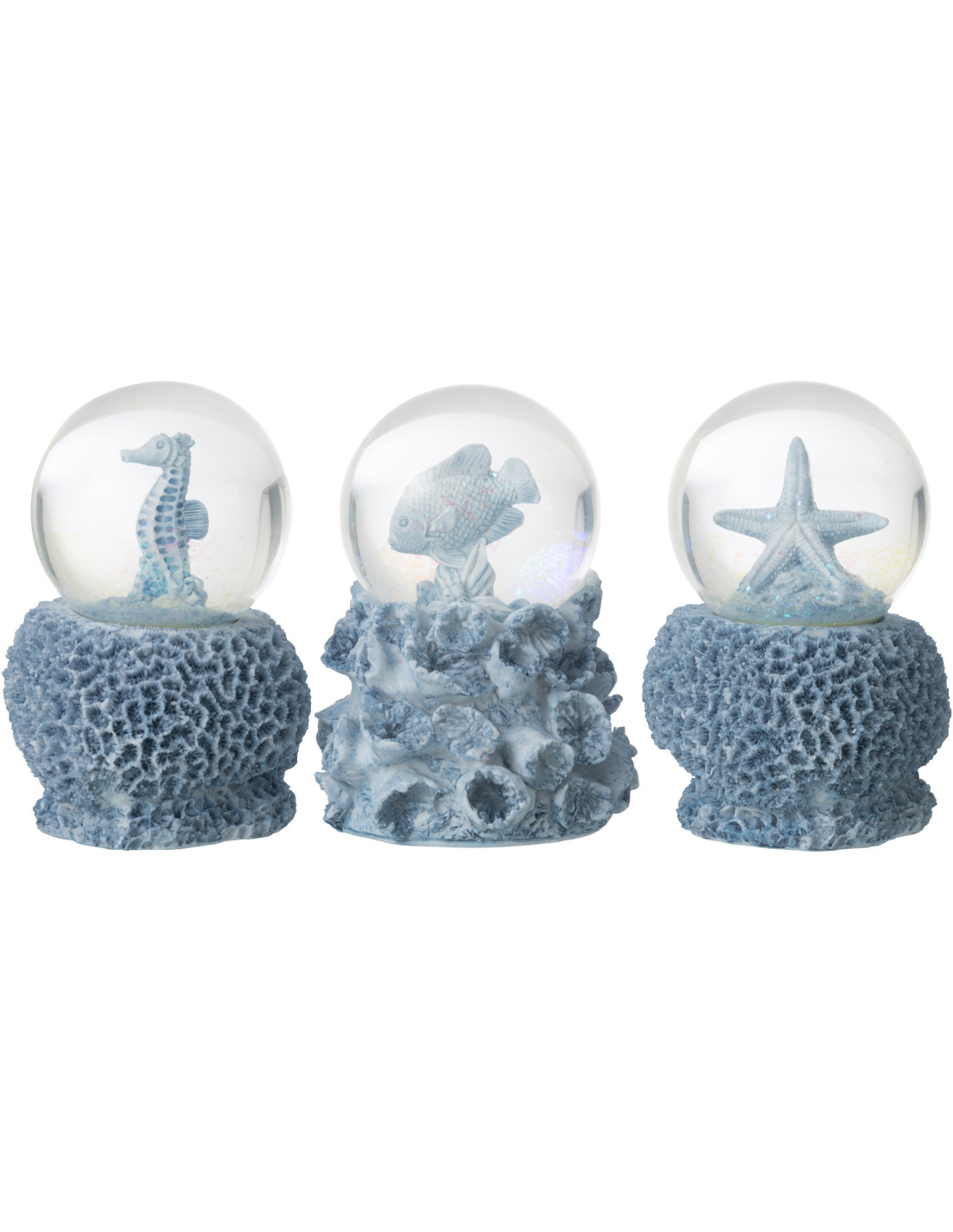 Lot de 3 Boules à neige Hippocampe Poisson Étoile de mer H 13 cm Résine Bleu clair Sea