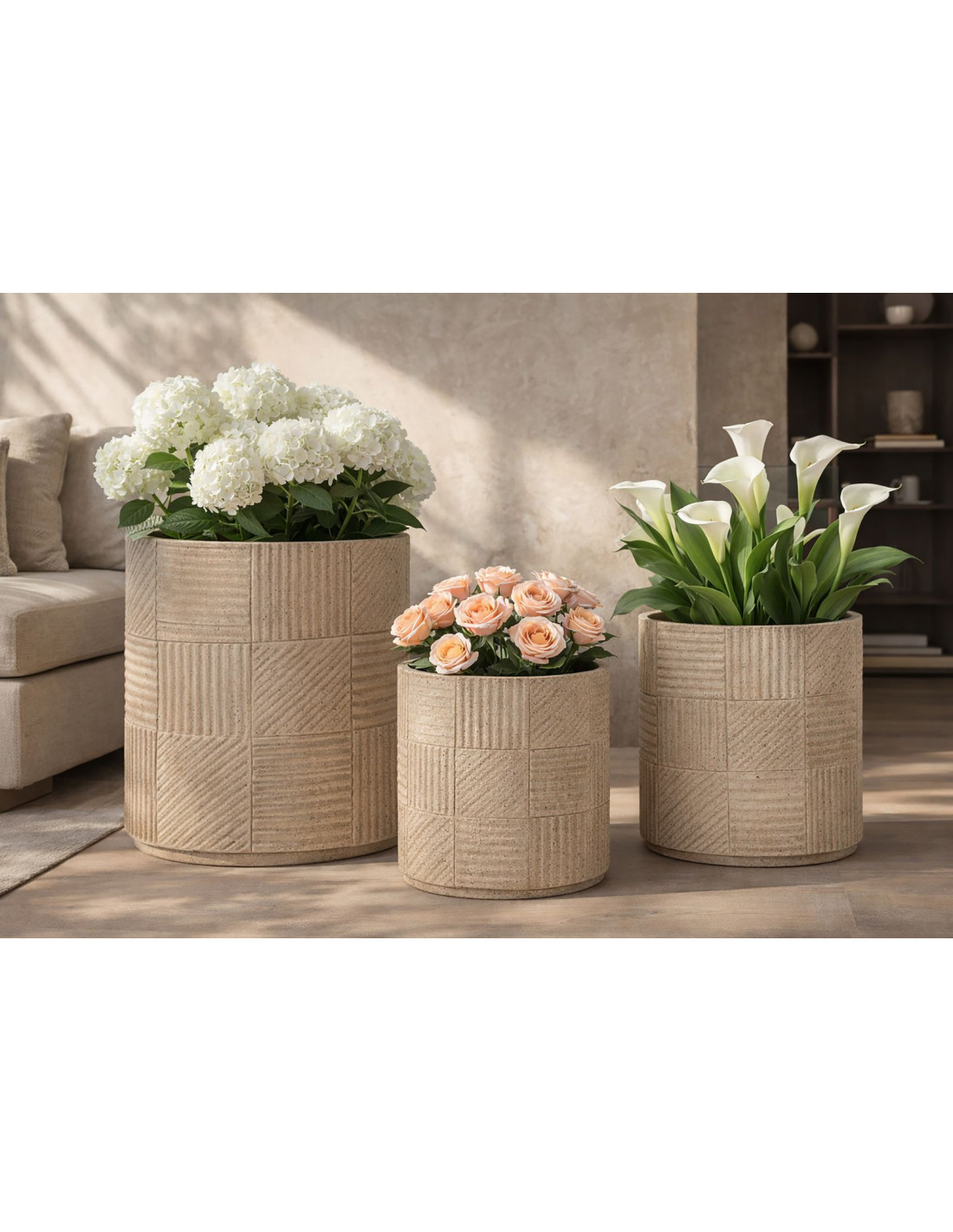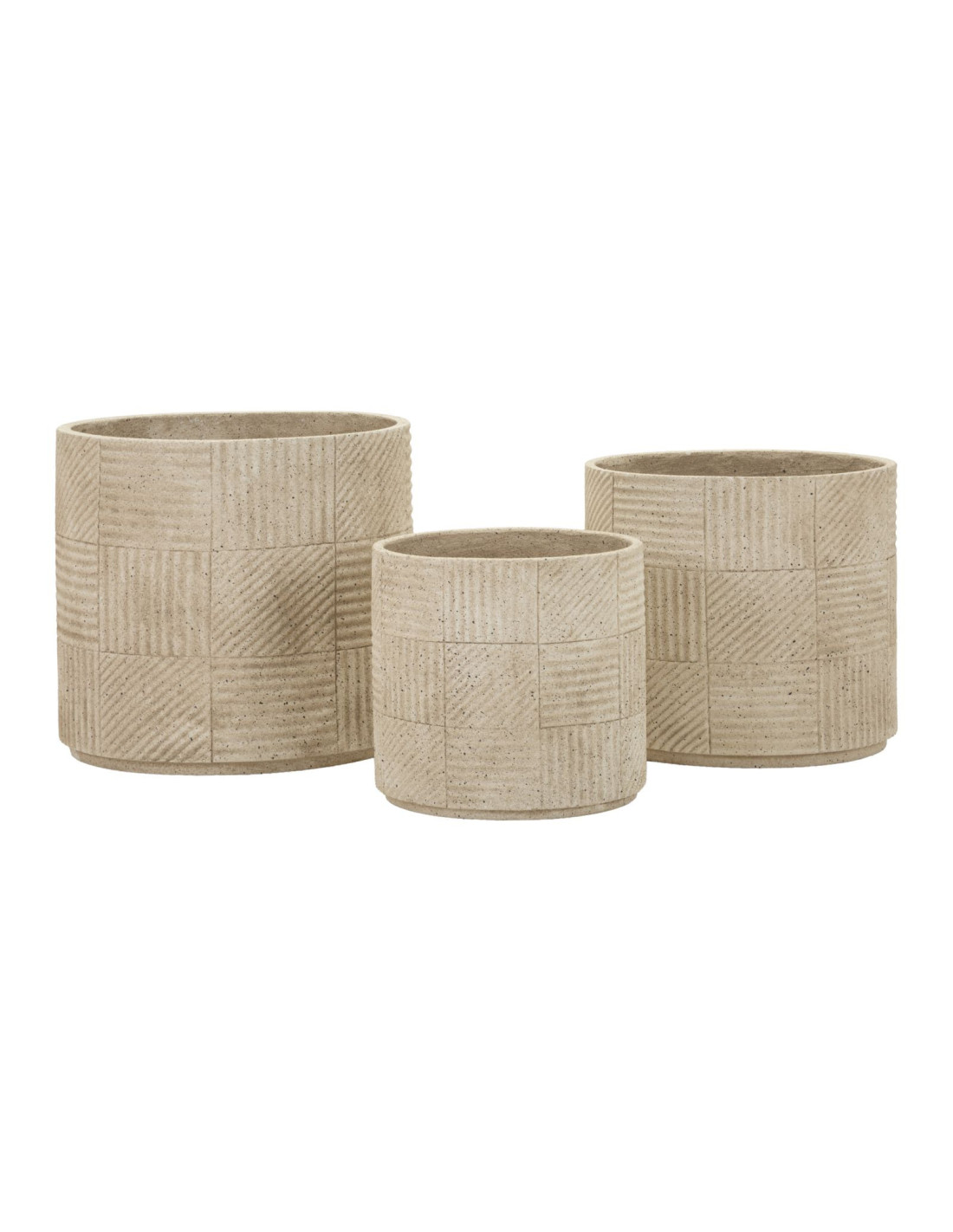 Lot de 3 cache-pots de jardin modernes Rond Résine Gris Motif carreaux Venezuela