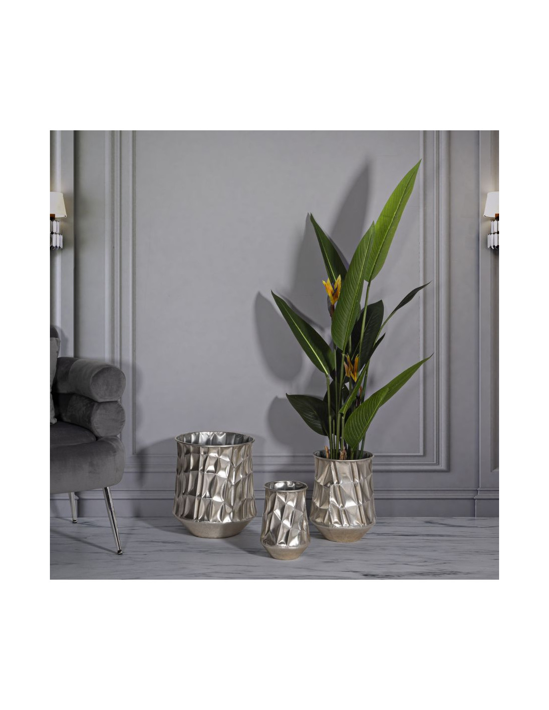 Lot de 3 Cache-pots design chic Métal Argenté Silver