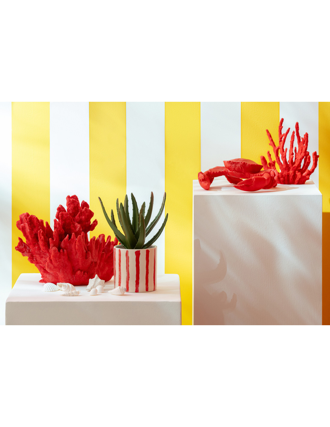 Lot de 3 Cache-pots design moderne Rond Céramique Blanc crème Rouge Motif lignes Ivora