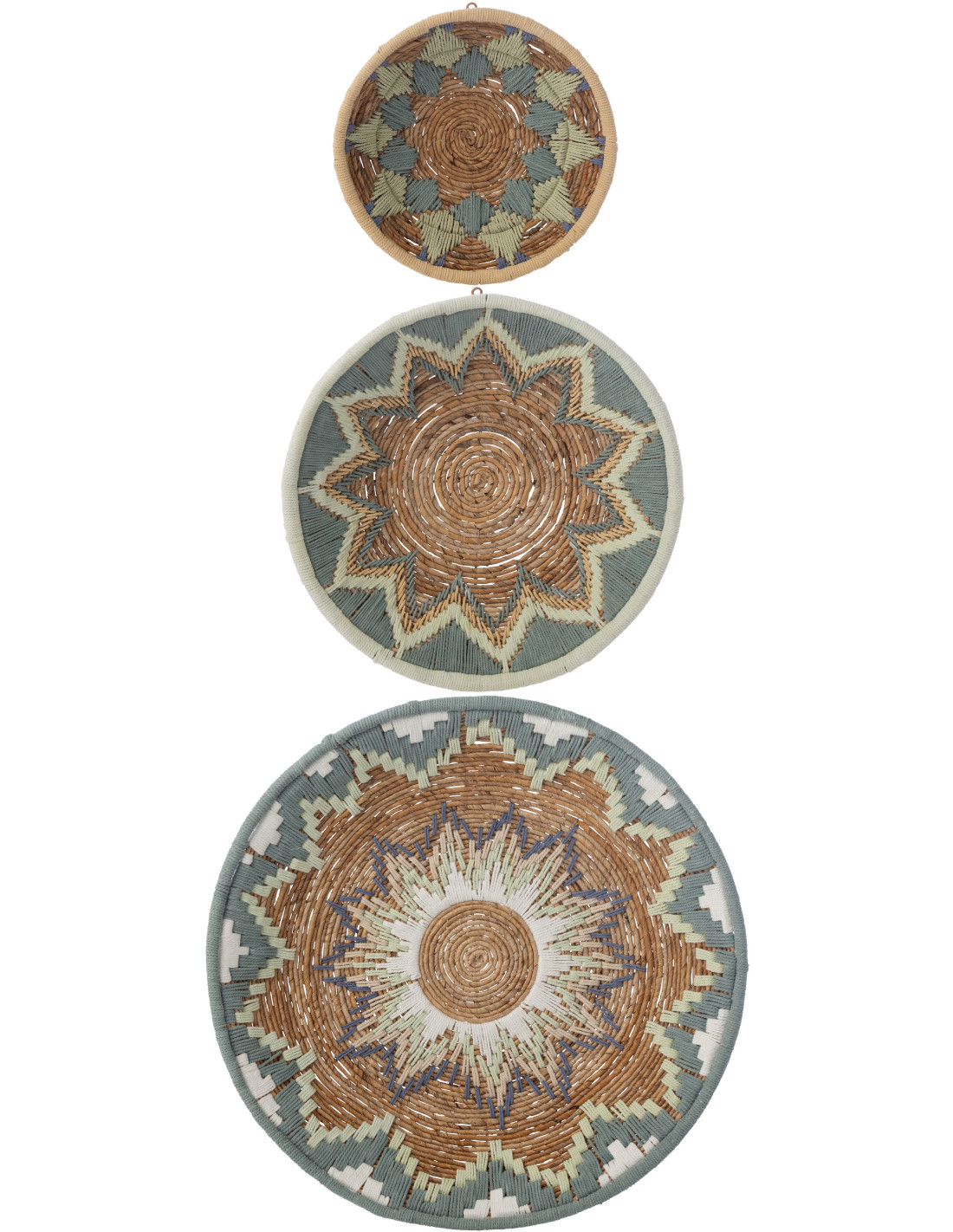Lot de 3 Décorations murales bohème Branche de bananier Naturel Bleu clair Tressé Soléaro