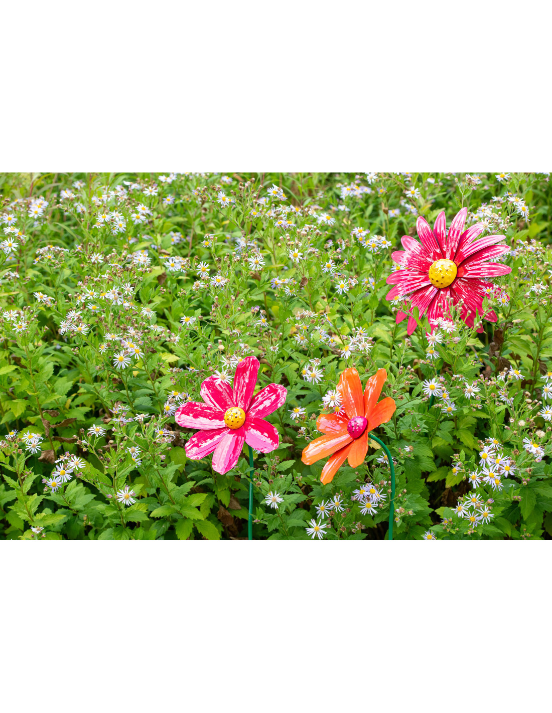 Lot de 3 Grandes Fleurs déco design à planter H 89 cm Métal Jaune Rose Rouge Bloei