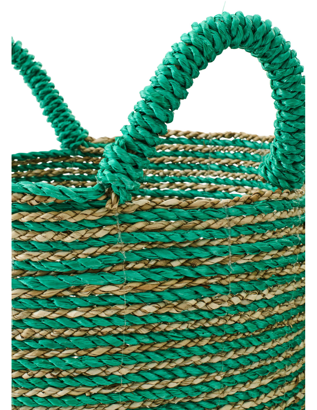 Lot de 3 Paniers de rangement bohème avec anses Raphia Vert foncé Naturel Tressé Motif lignes Jangala