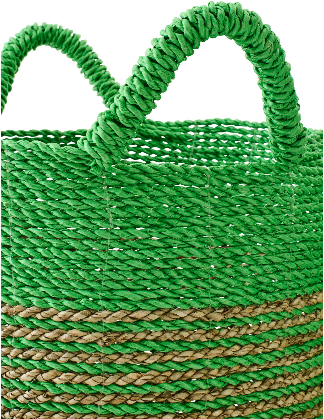 Lot de 3 Paniers de rangement bohème avec anses Raphia Vert Naturel Tressé Motif lignes Jangala