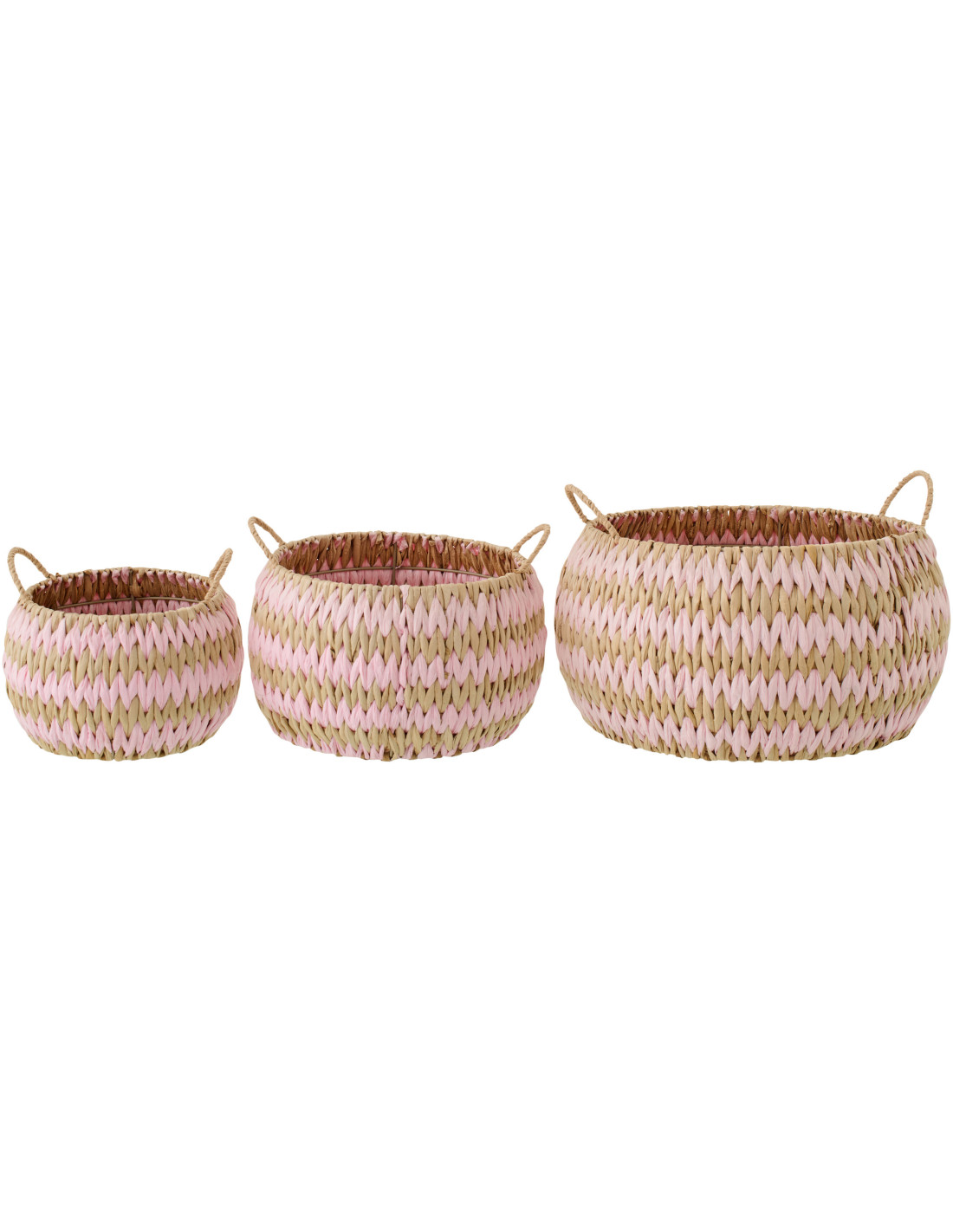 Lot de 3 Paniers de rangement bohème Jonc de mer Rose clair Naturel Tressé Tissania