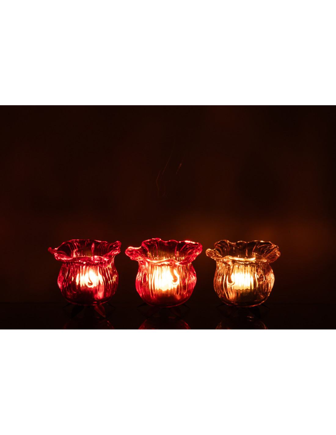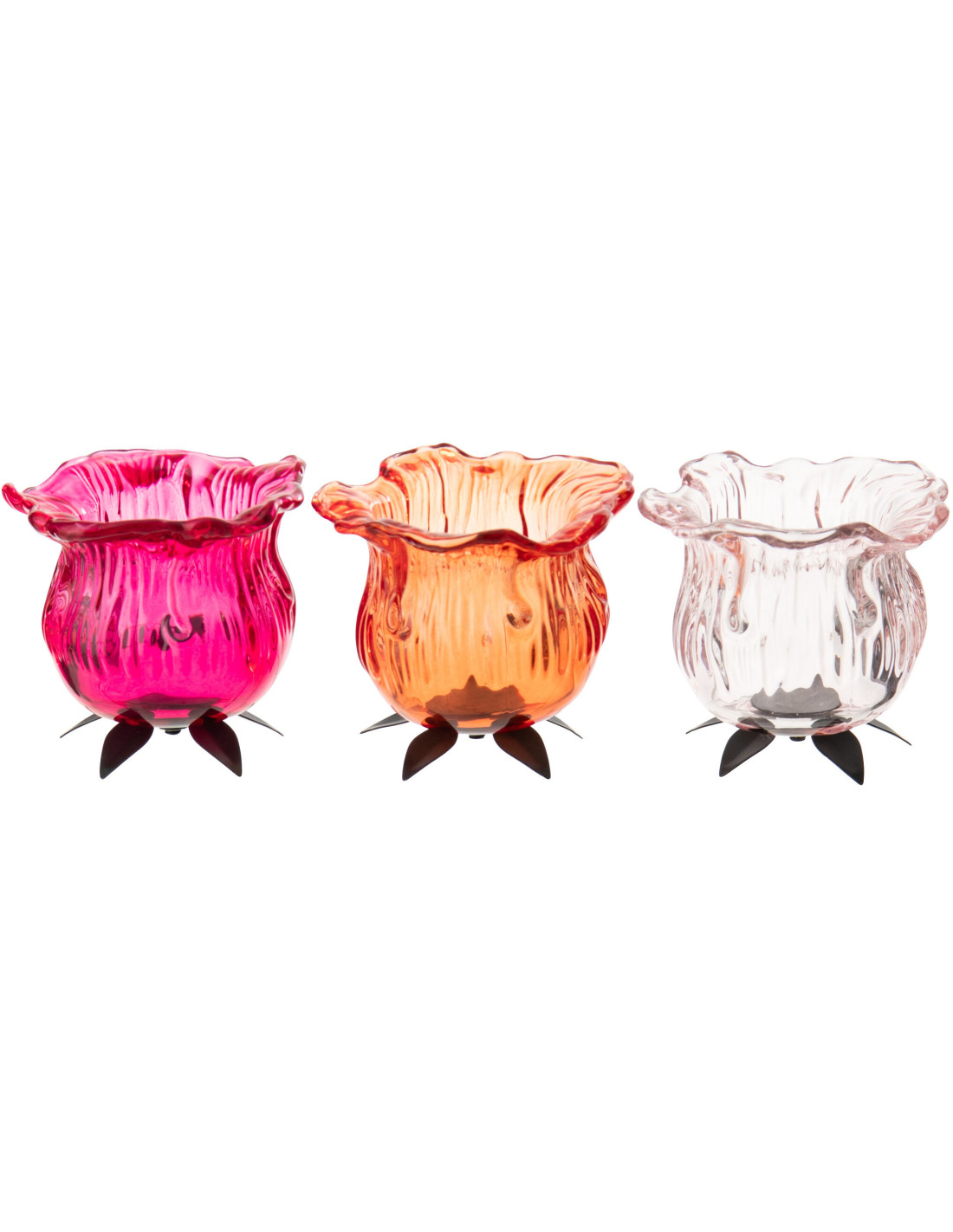 Lot de 3 Photophores design Fleurs 10 cm Verre Orange Rose Transparent Flowra