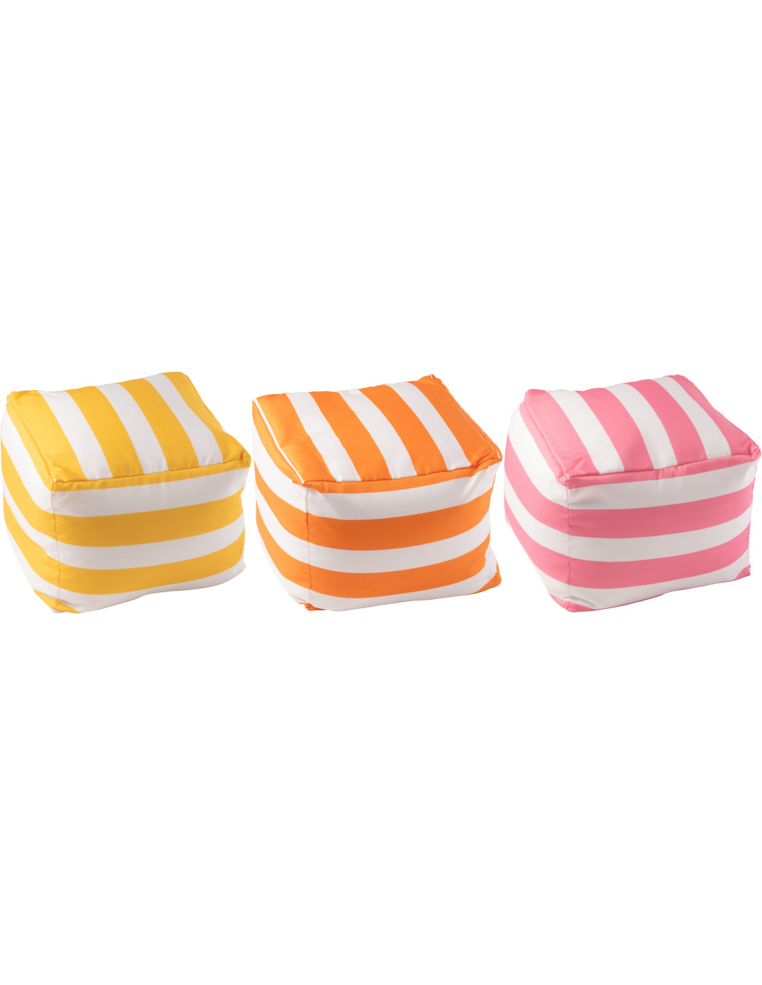 Lot de 3 poufs extérieurs bord de mer Carré 45 cm Tissu Jaune Orange Rose Blanc Motif rayures Playana