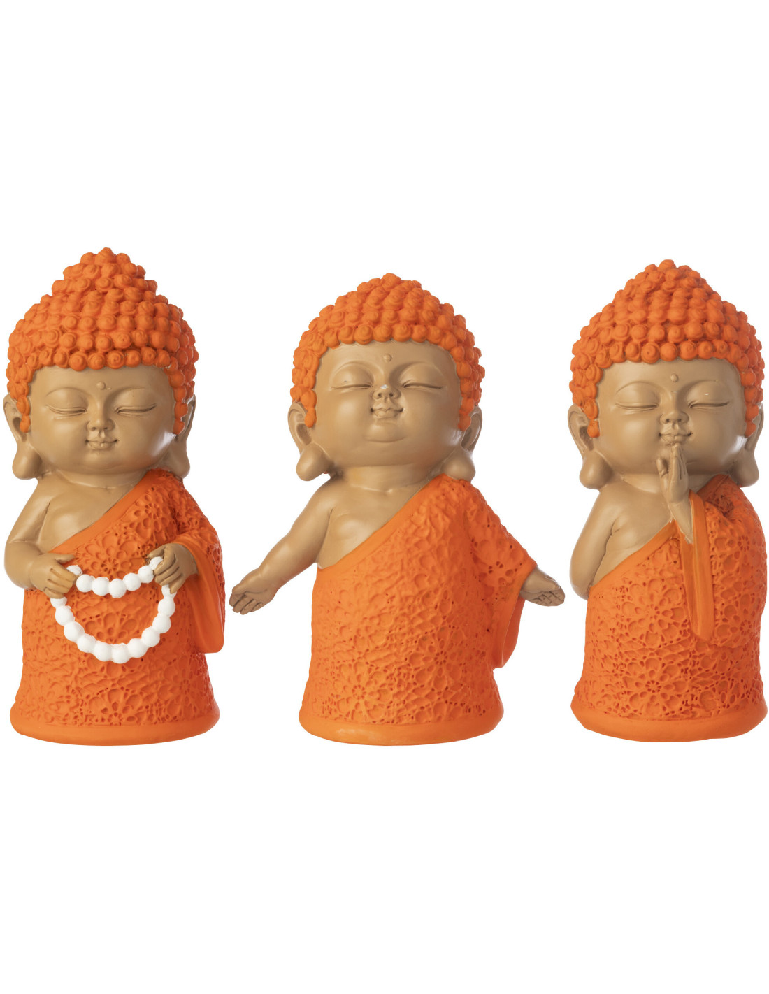 Lot de 3 Statuettes Moines Priants H 15 cm Résine Orange Beige Zenko