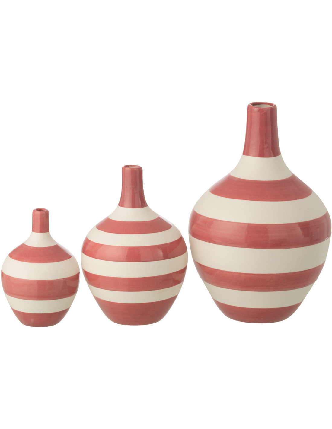 Lot de 3 Vases design moderne Goutte Porcelaine Rose Blanc Motif rayures Vrolijk