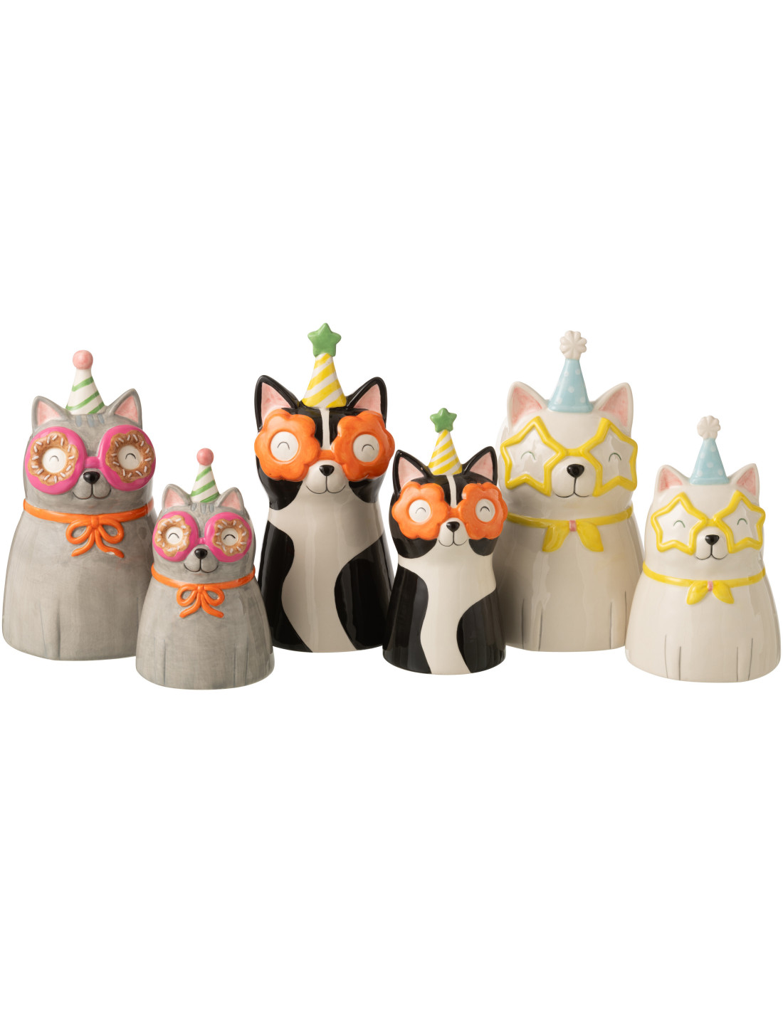 Lot de 3 Vases originaux Chats Lunettes H 26 cm Céramique Multicolore Funkyni