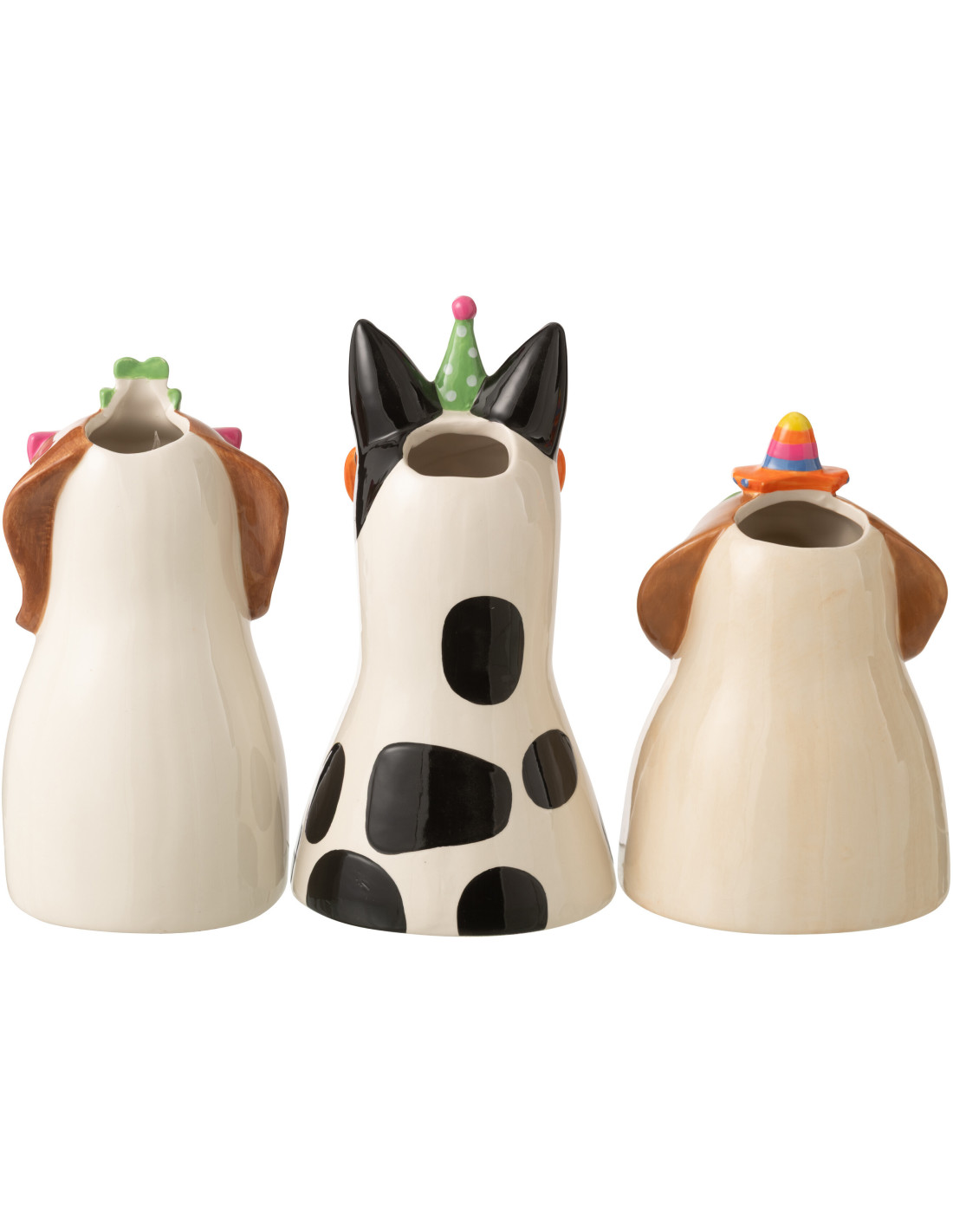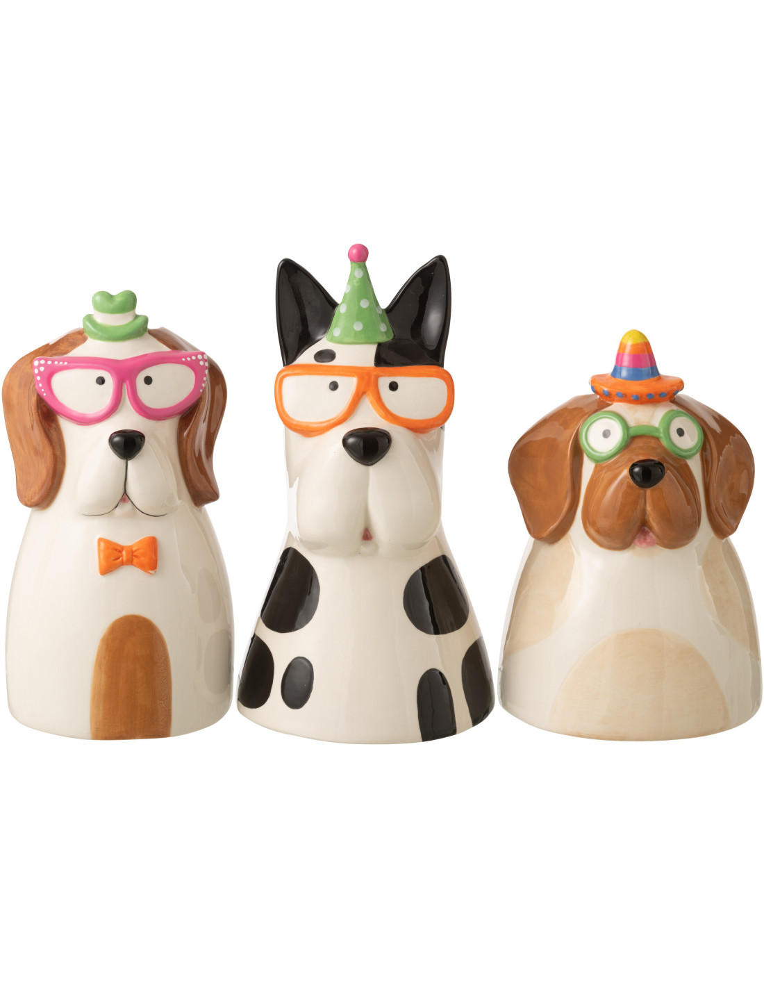 Lot de 3 Vases originaux Chiens Lunettes H 28 cm Céramique Multicolore Funkyni