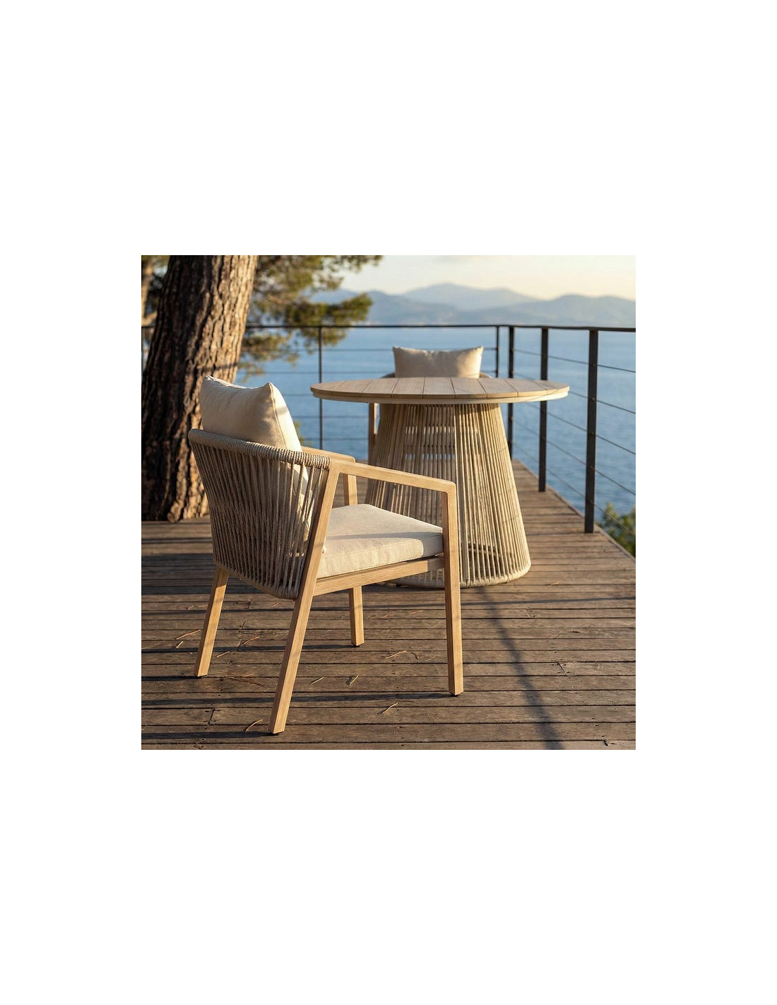 Coussins inclus - Conforme à la norme EN 581, adaptée à un usage domestique comme à un usage professionnel CHR (cafés, hôtels, restaurants), garantissant stabilité et résistance en intérieur comme en extérieur.