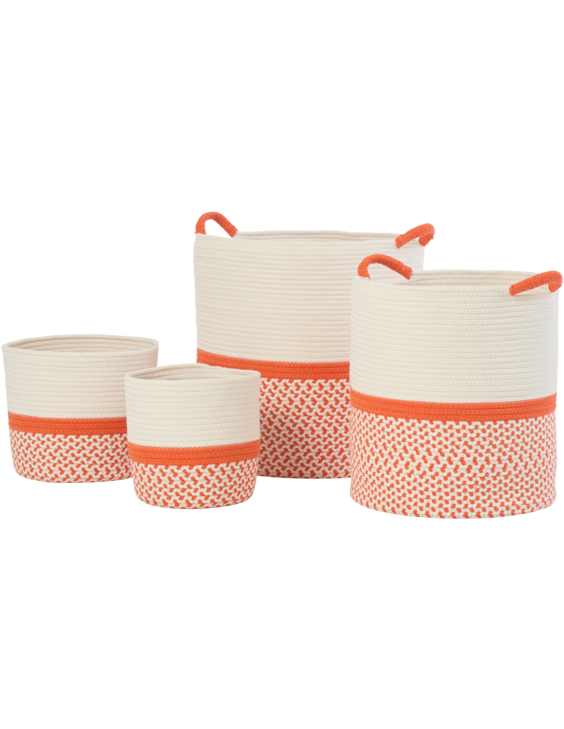 Lot de 4 Paniers de rangement bohème Tissu Coton Blanc Orange Tressé Sirrocco