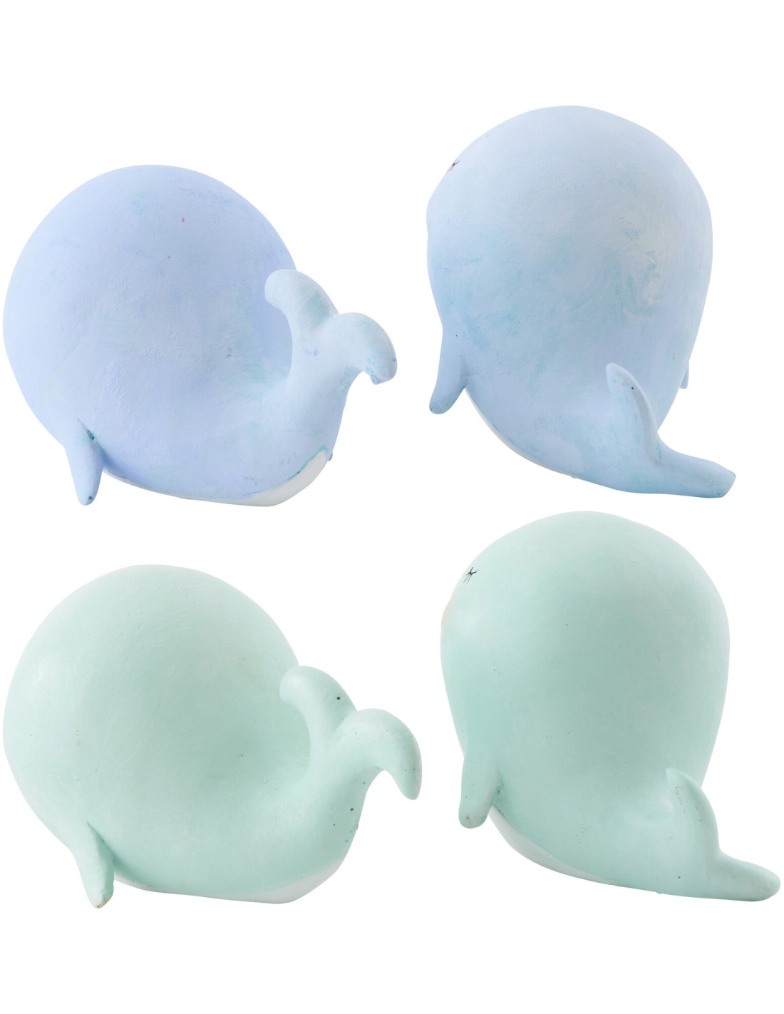 Lot de 4 Statuettes déco Baleines H 6 cm Résine Bleu clair Vert clair Bloopa