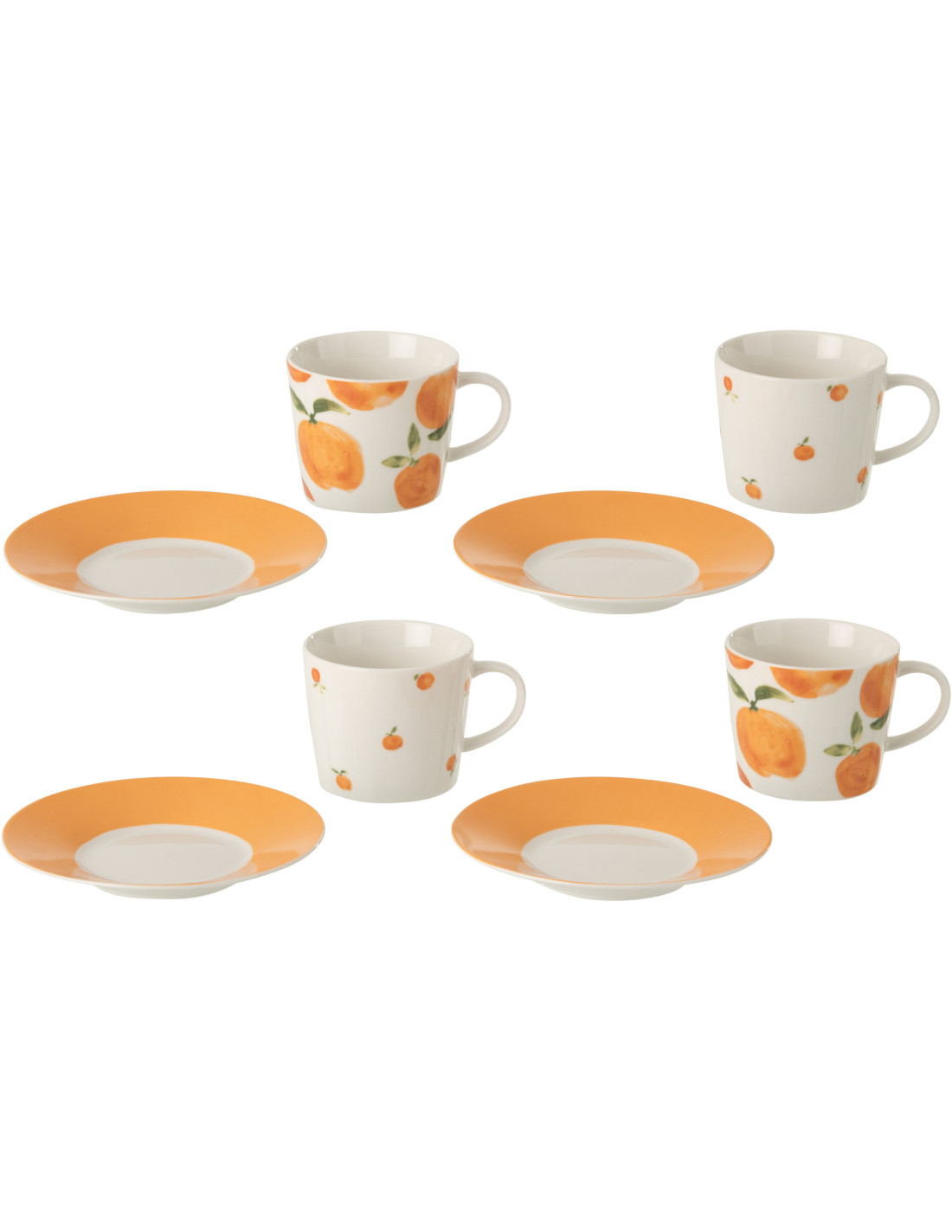 Lot de 4 Tasses à café style méditerranéen 200 ml Céramique Blanc Orange Motif oranges Fruttia