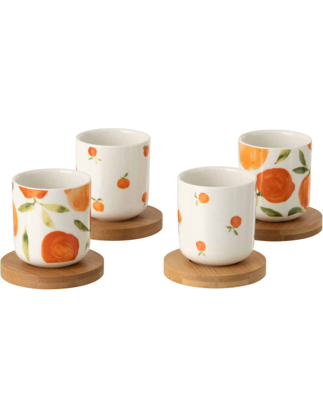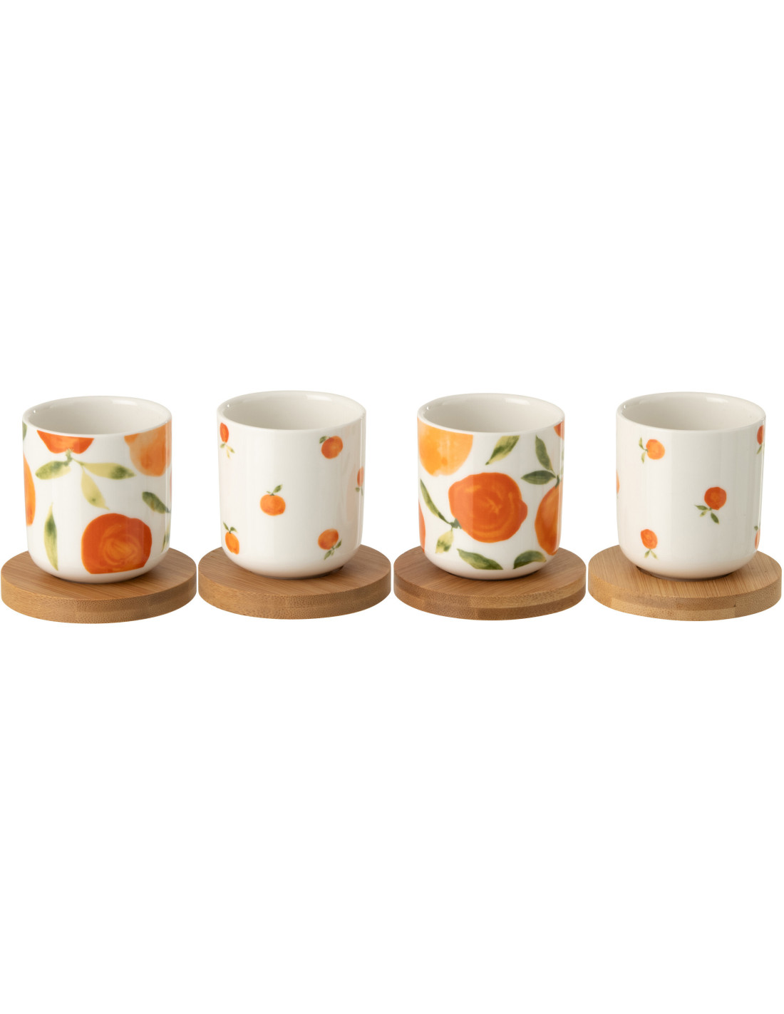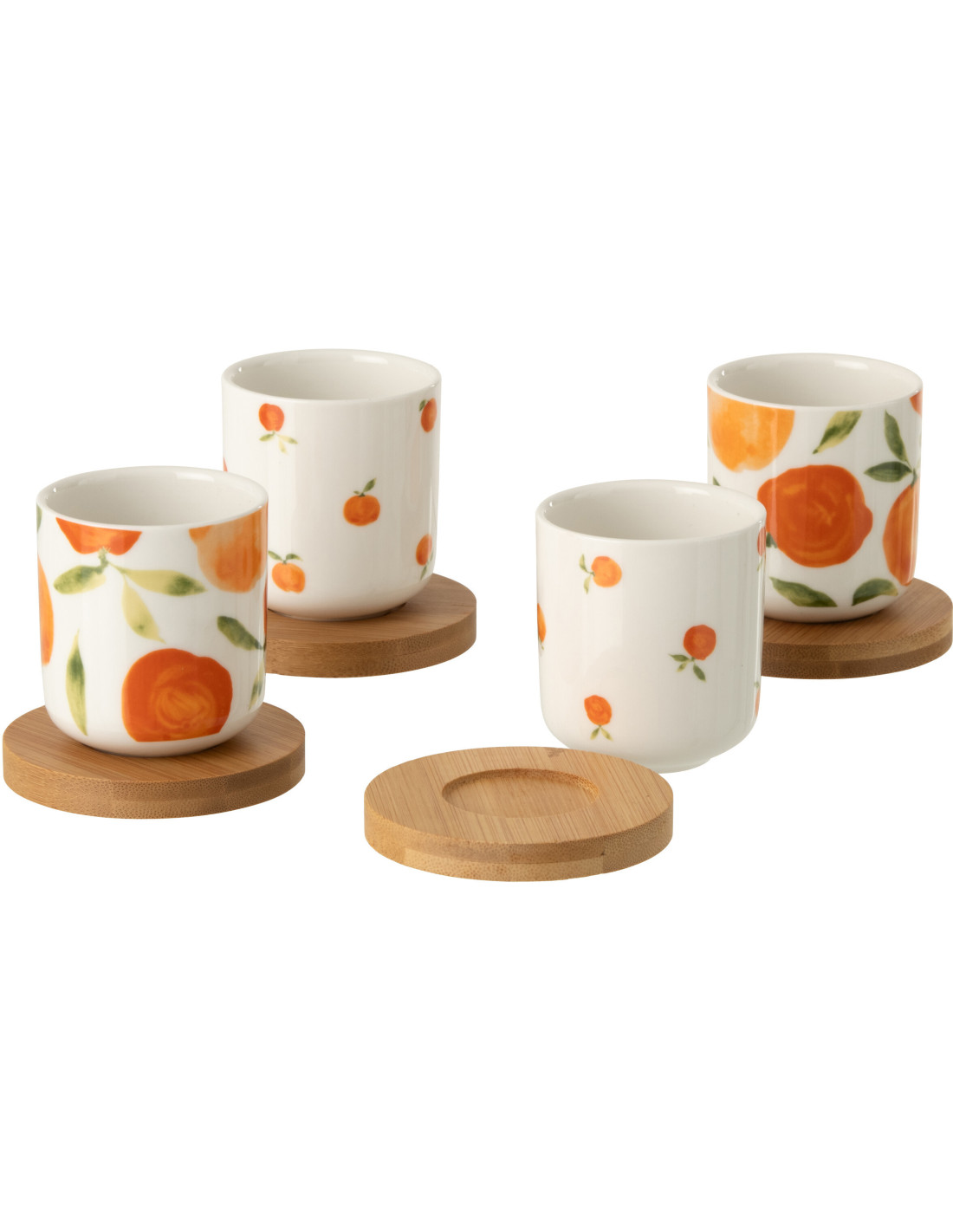 Lot de 4 Tasses espresso style méditerranéen 100 ml Céramique Blanc Orange Motif oranges Bambou Naturel Fruttia