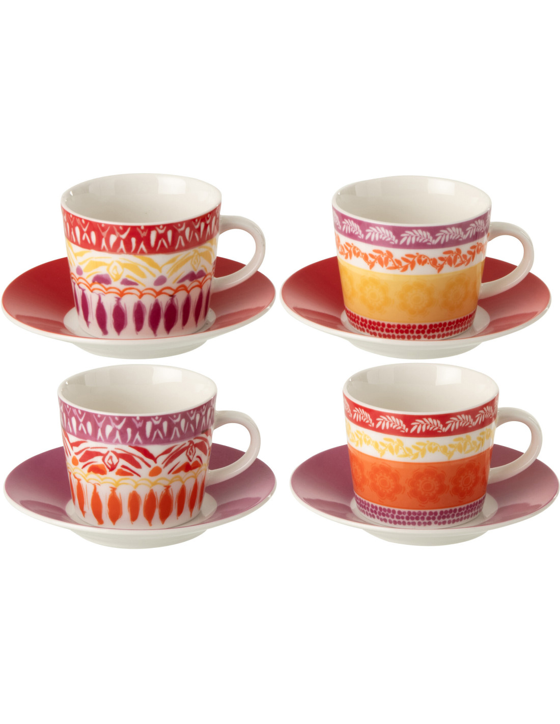 Un ensemble de tasses et sous-tasses aux teintes chaudes et aux motifs graphiques, pensé pour des moments partagés.