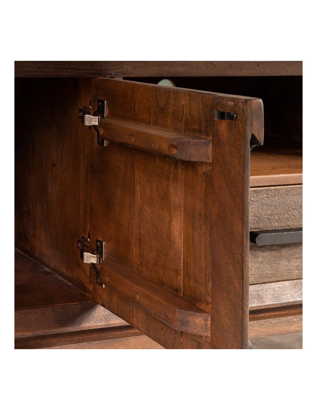 Grand Meuble télé moderne 4 portes 1 tiroir 1 niche en Bois de manguier Marron Kilian - 8