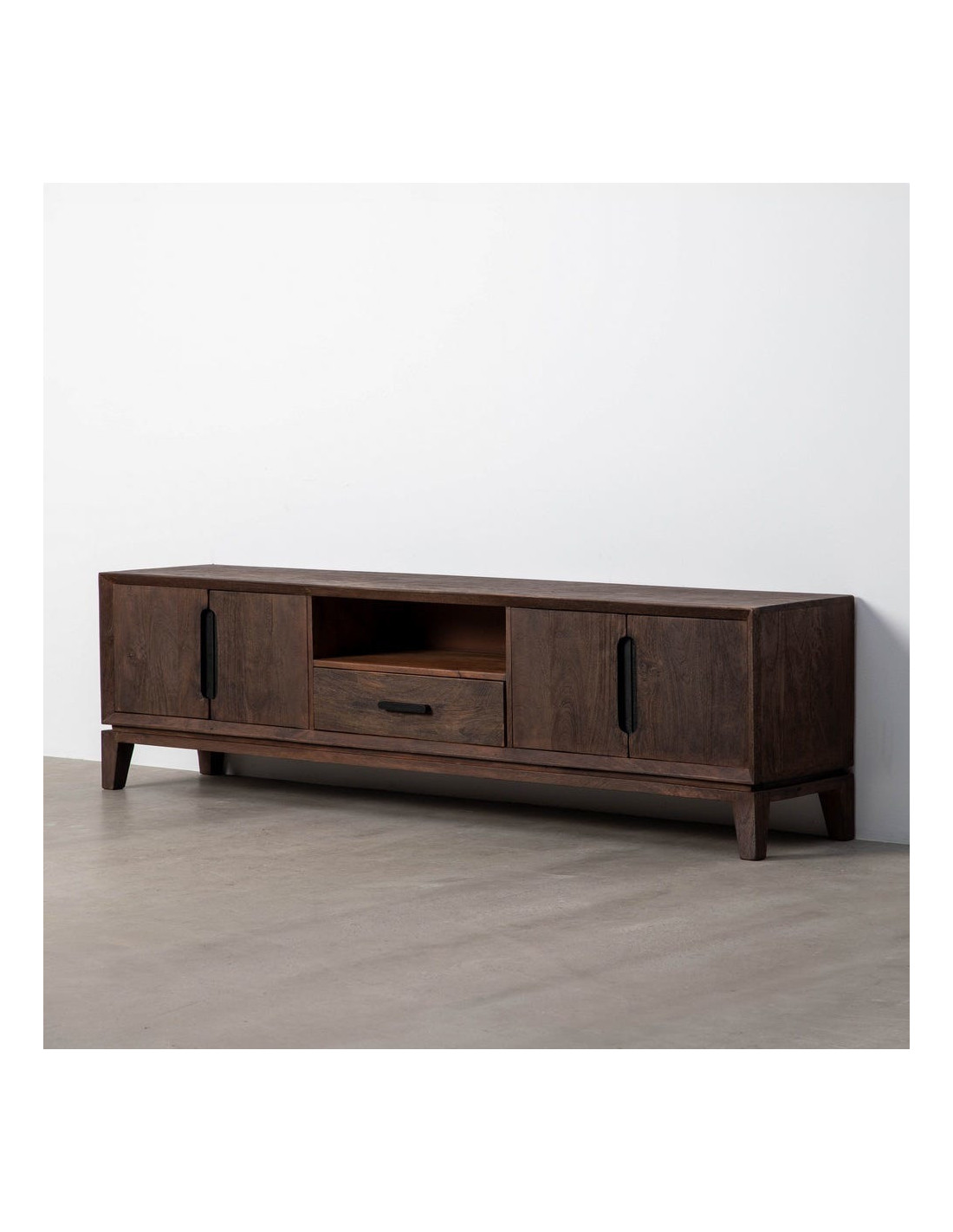 Grand Meuble télé moderne 4 portes 1 tiroir 1 niche en Bois de manguier Marron Kilian - 1