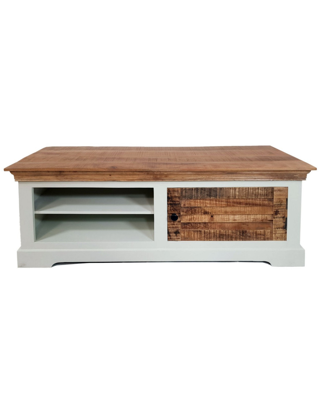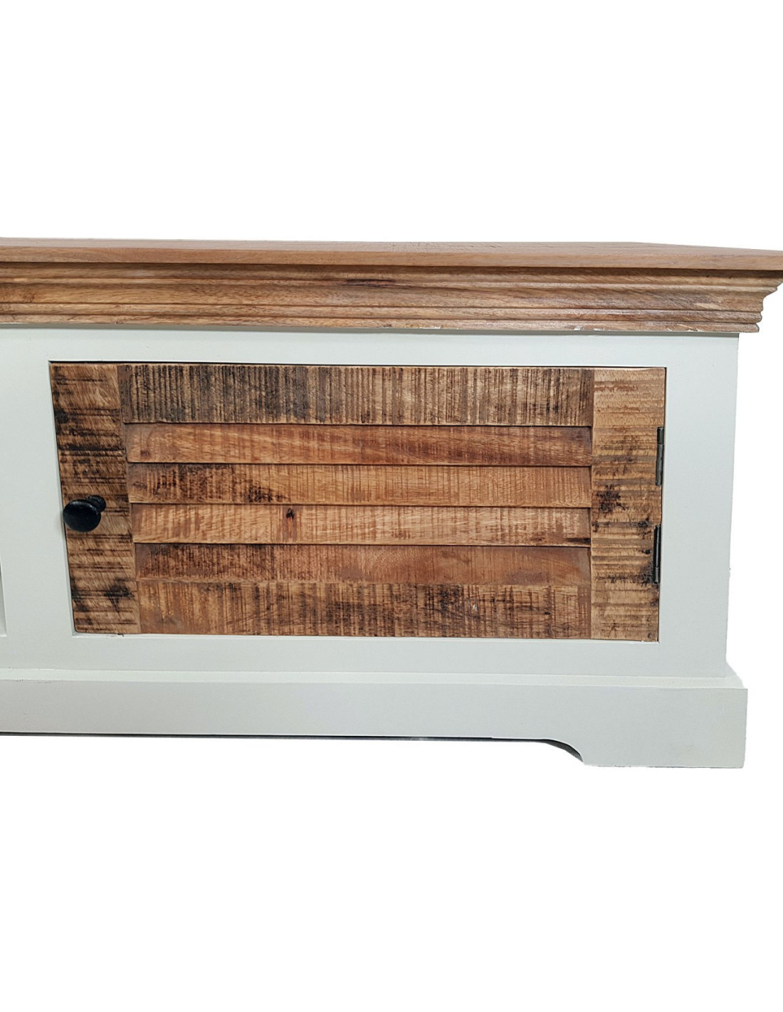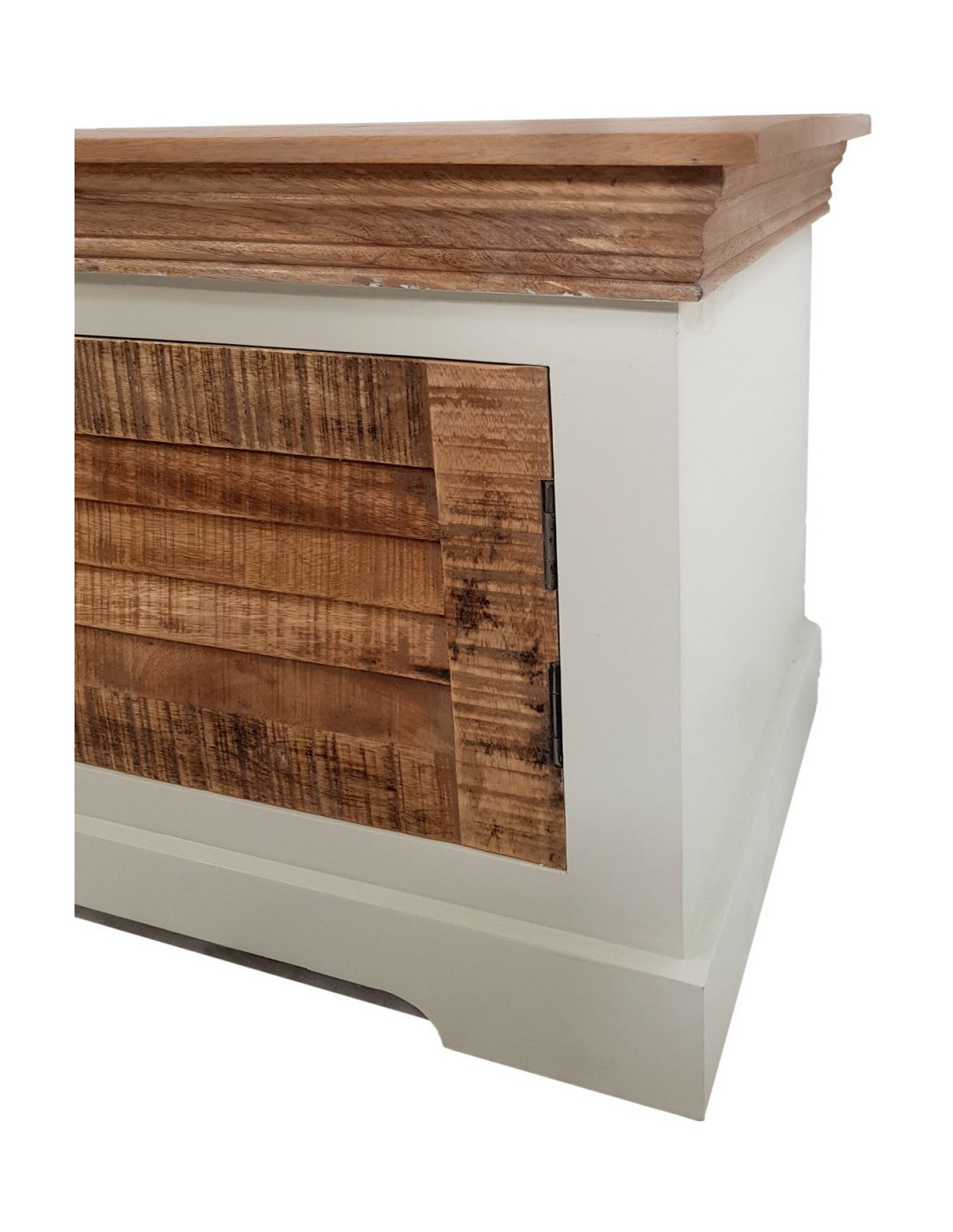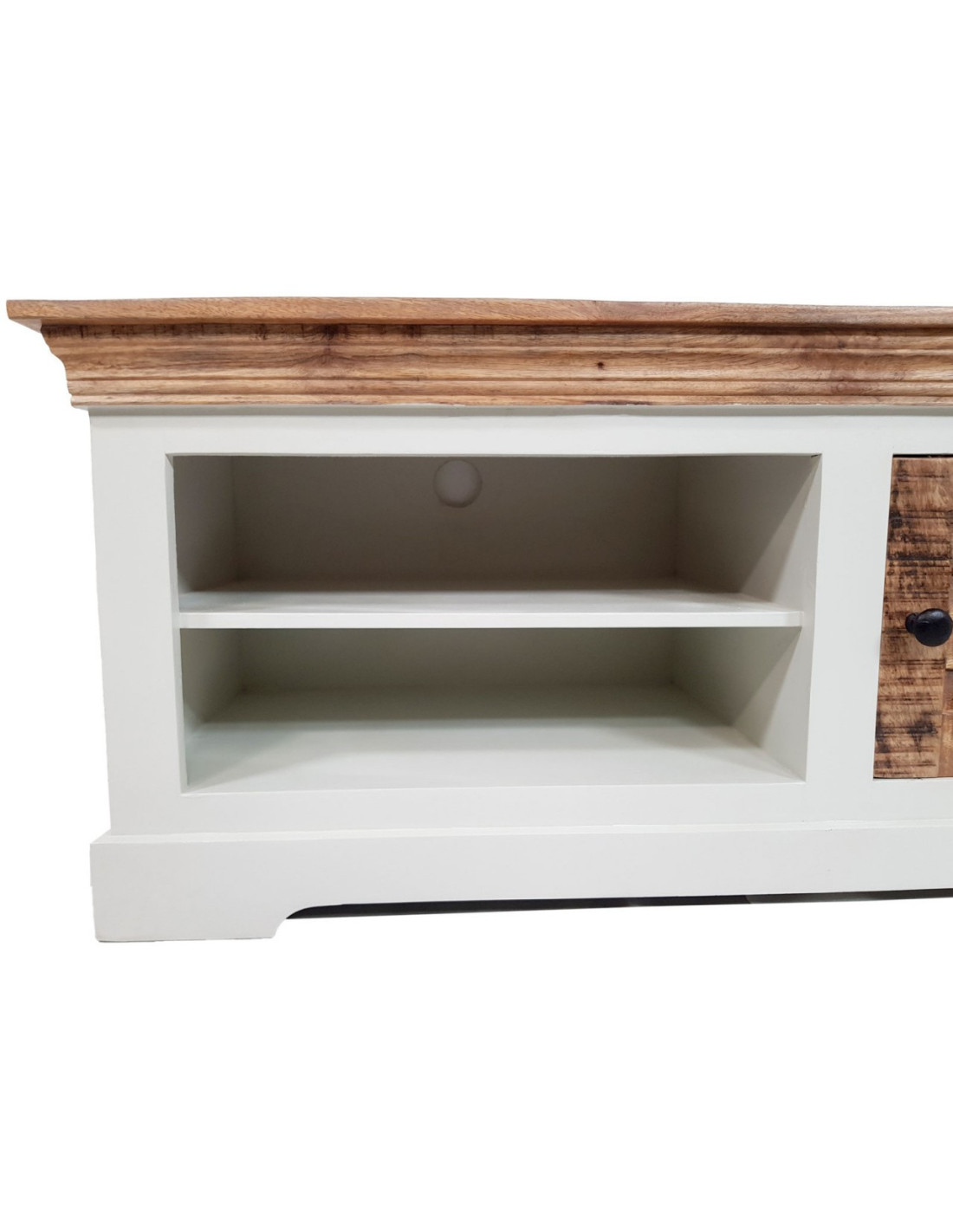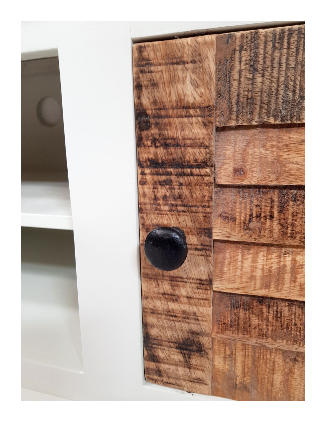 Meuble télé moderne 3 étagères en Bois de manguier massif Naturel Métal Noir Evrion