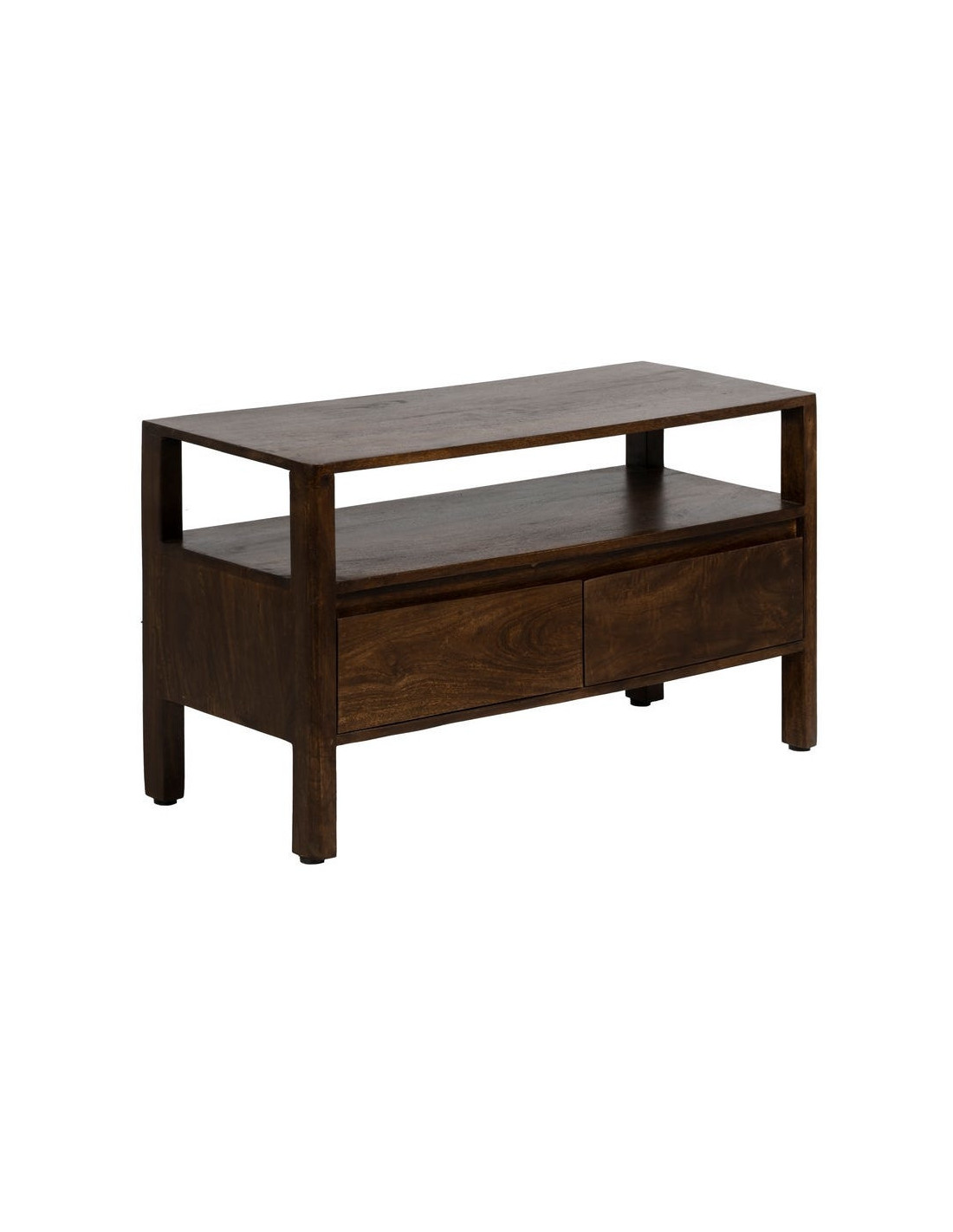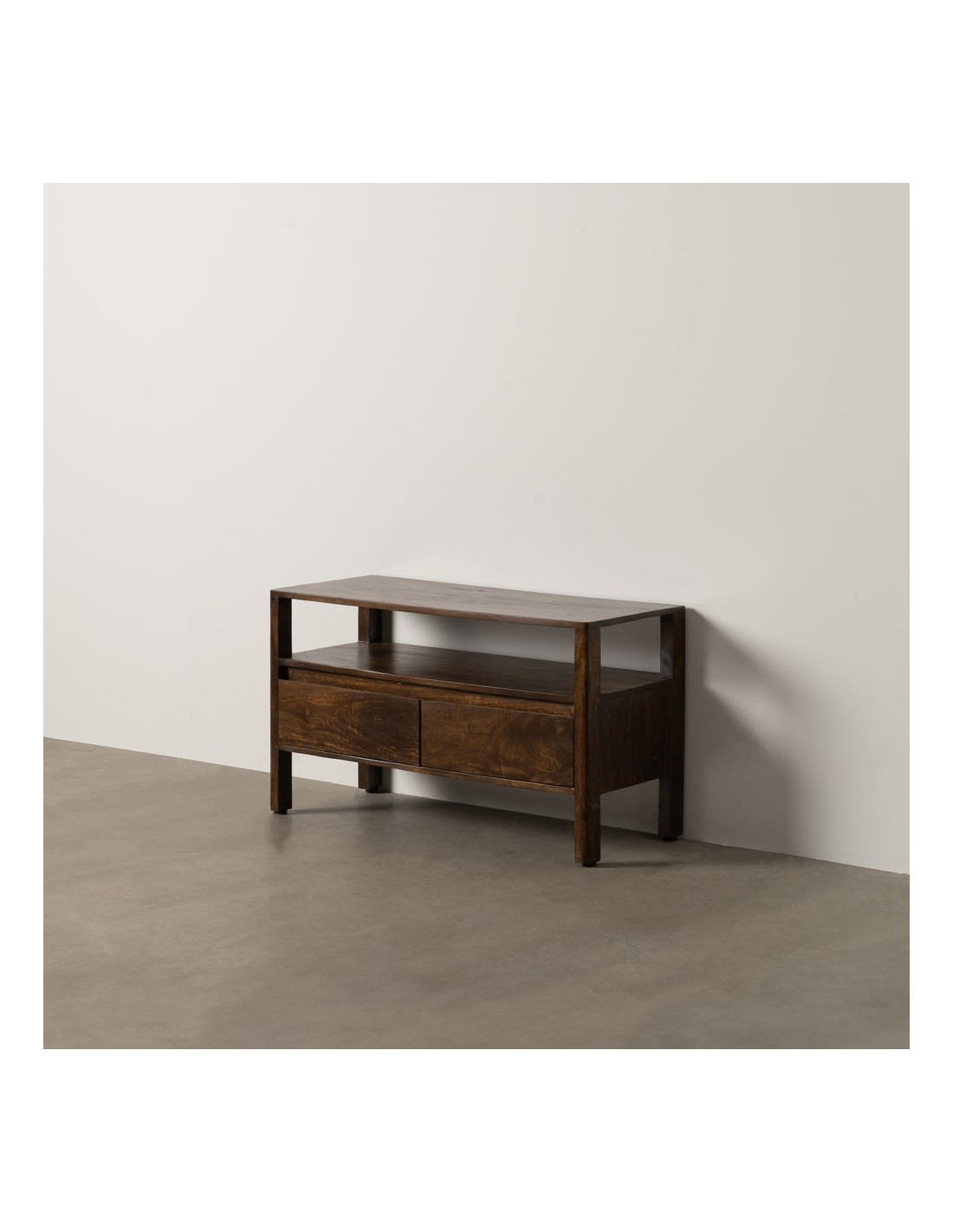 Meuble télé moderne 2 tiroirs 1 étagère en Bois de manguier Marron foncé Kurt