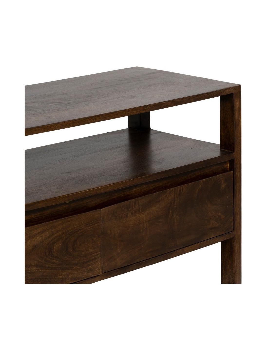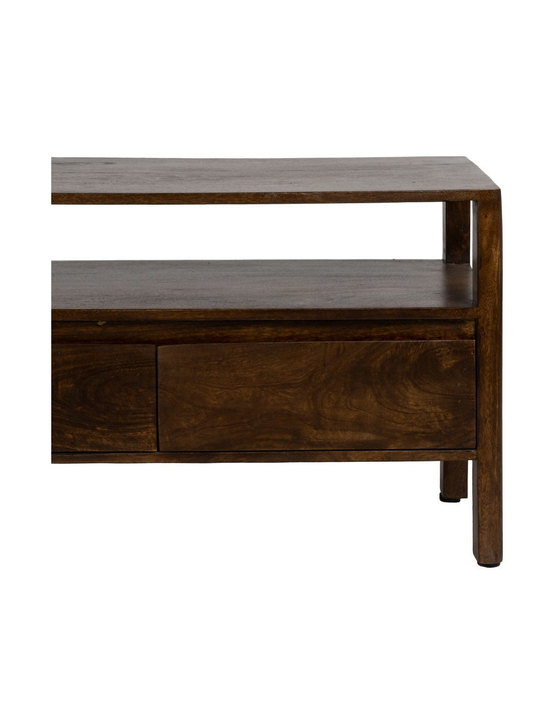 Meuble télé moderne 2 tiroirs 1 étagère en Bois de manguier Marron foncé Kurt - 1