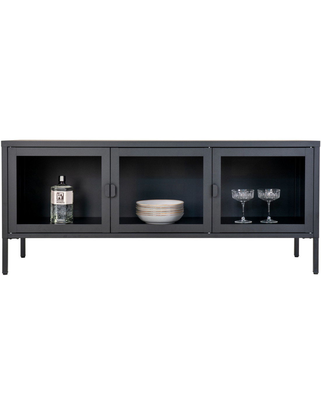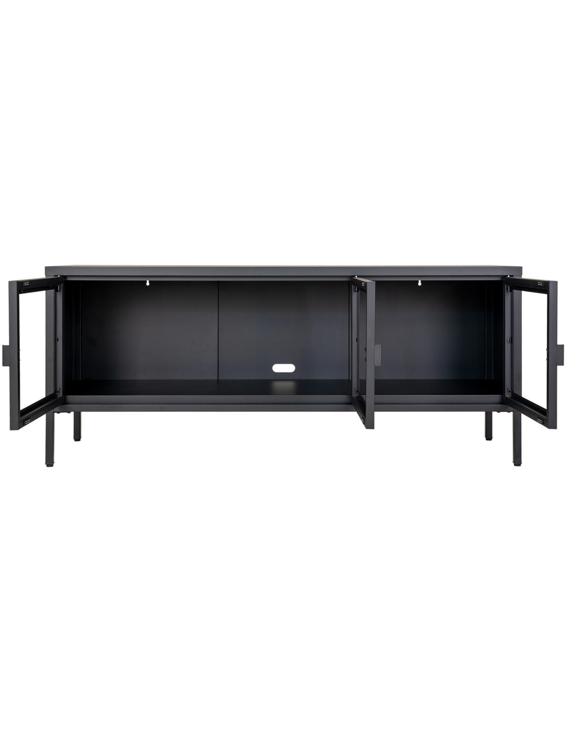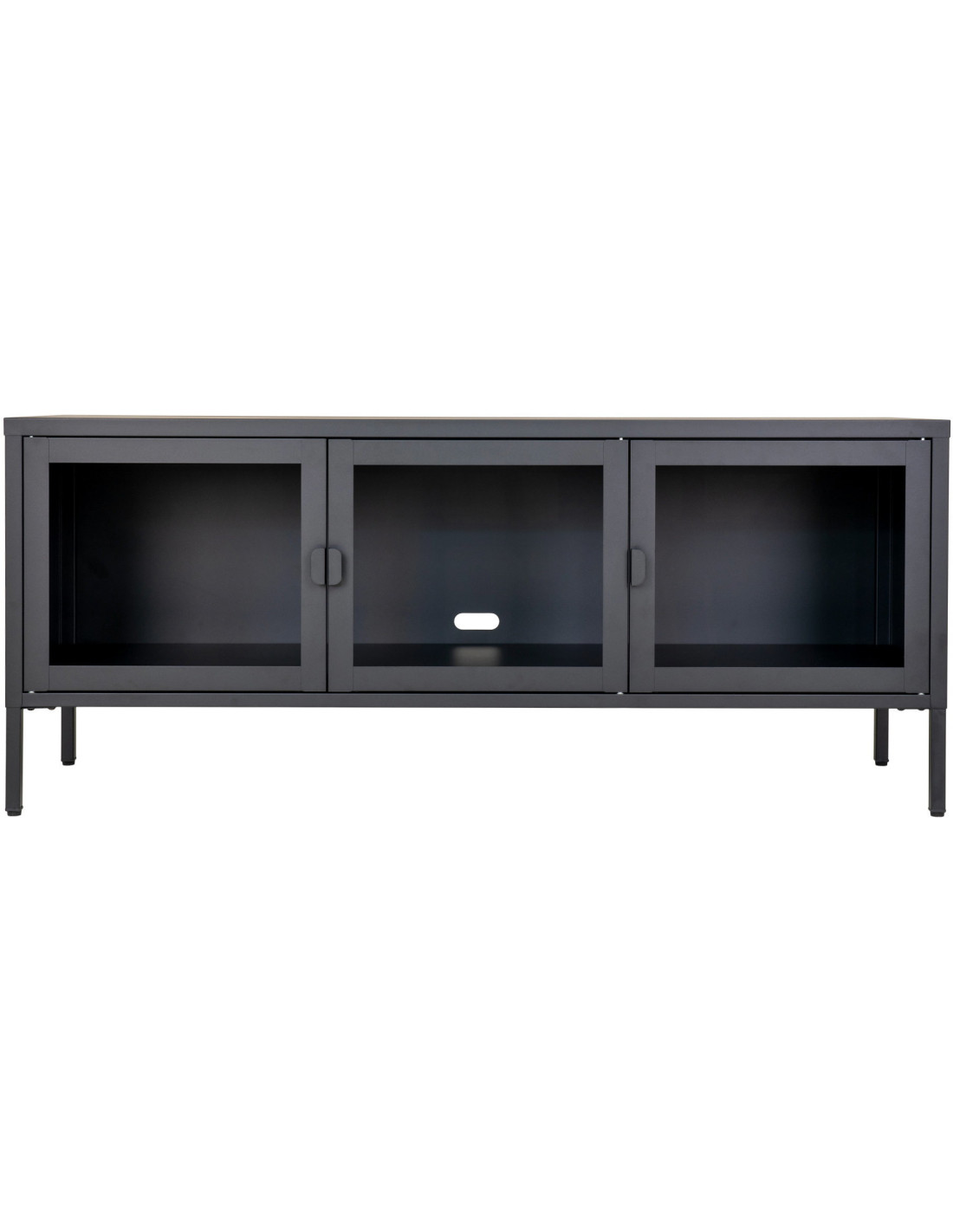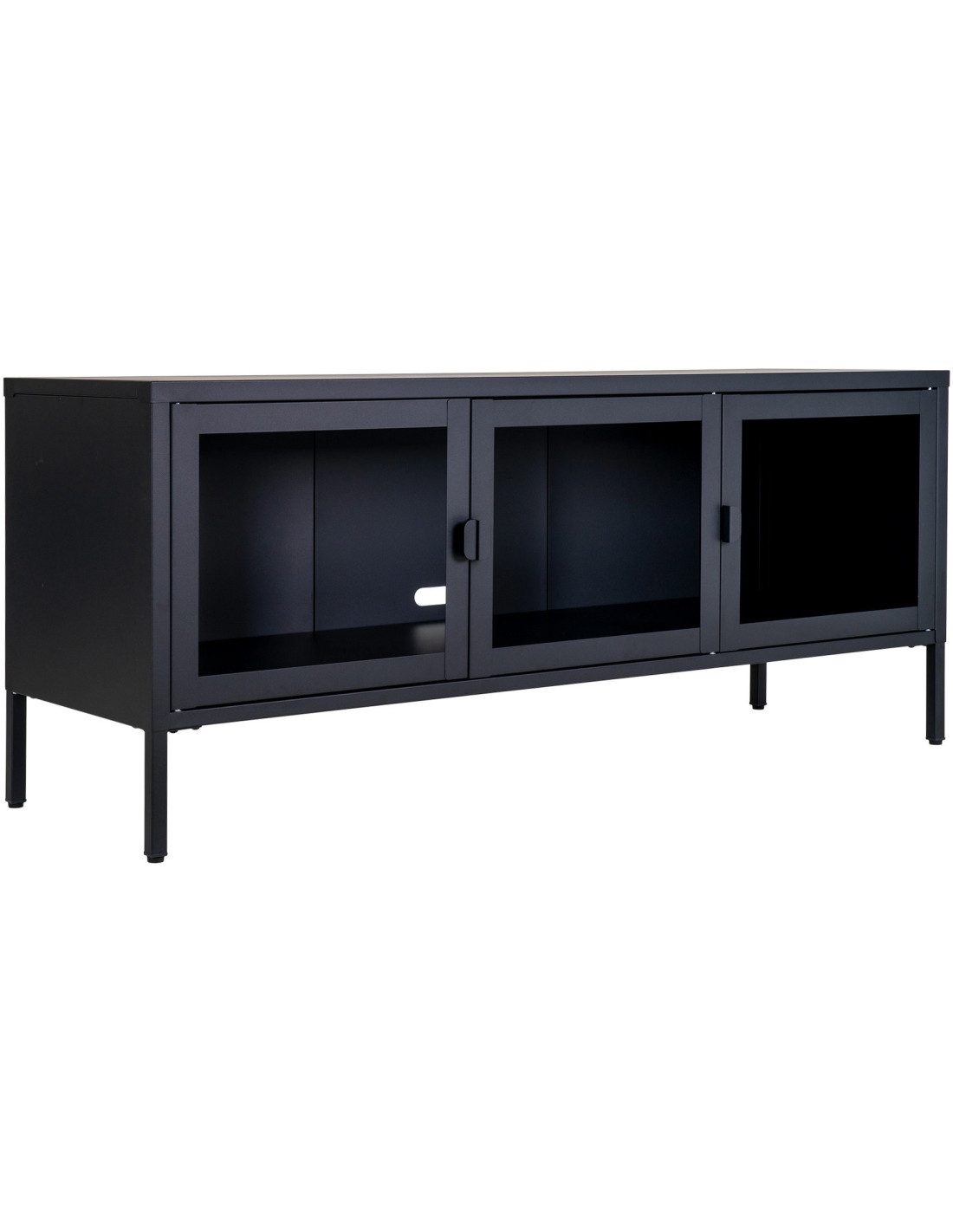 Meuble télé moderne 3 portes Métal Noir Verre Transparent Brisbane