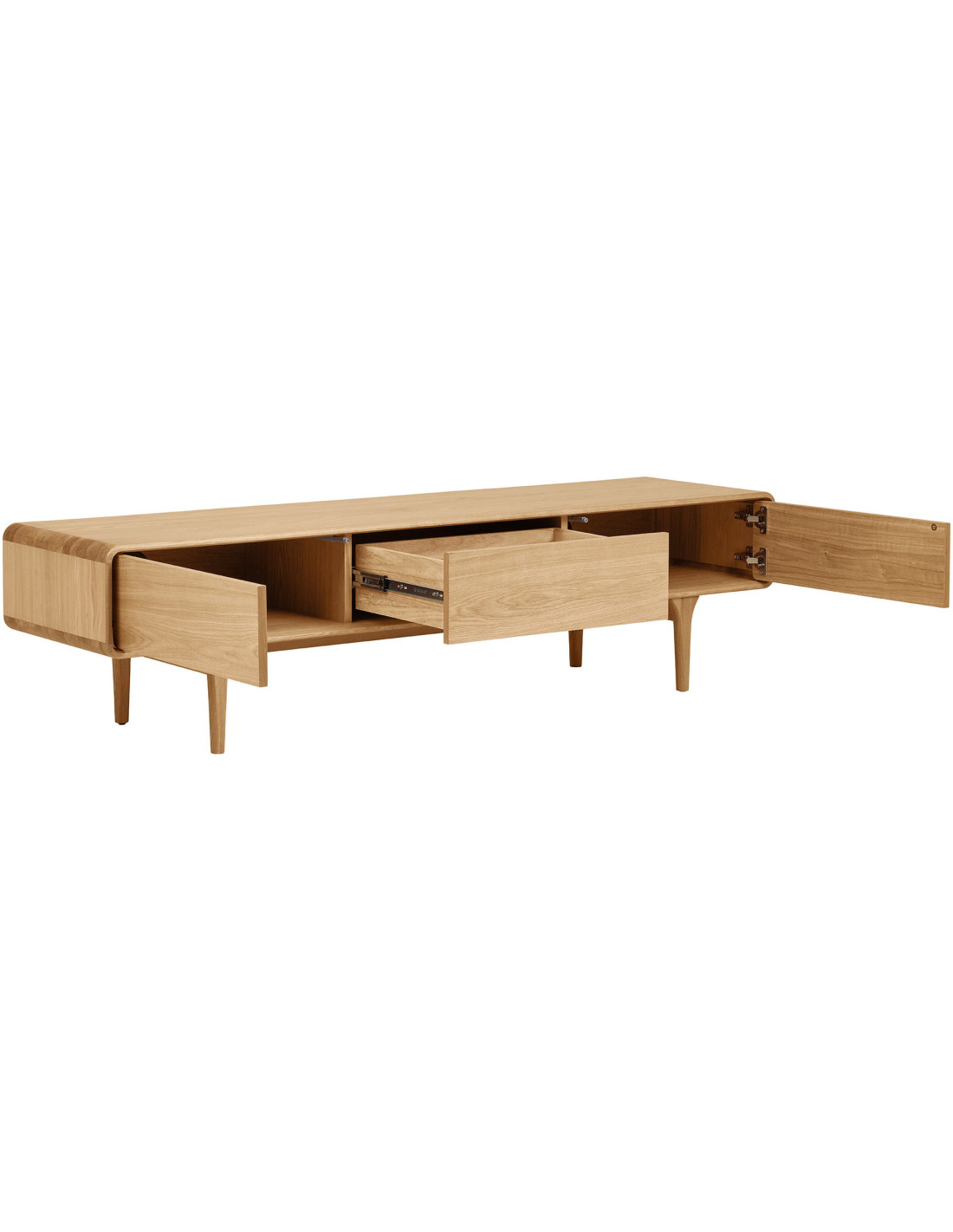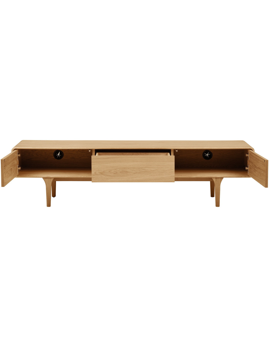 Les lignes du meuble Darwin sont volontairement simples. Les façades restent lisses pour un rendu minimaliste. Les pieds légèrement inclinés apportent de la légèreté. Ils dégagent le sol et facilitent l’entretien. Les proportions sont harmonieuses. Le meuble ne surcharge pas l’espace. Il s'intègre naturellement dans votre salon. Il attire le regard sans excès. Il affirme une présence élégante et maîtrisée.