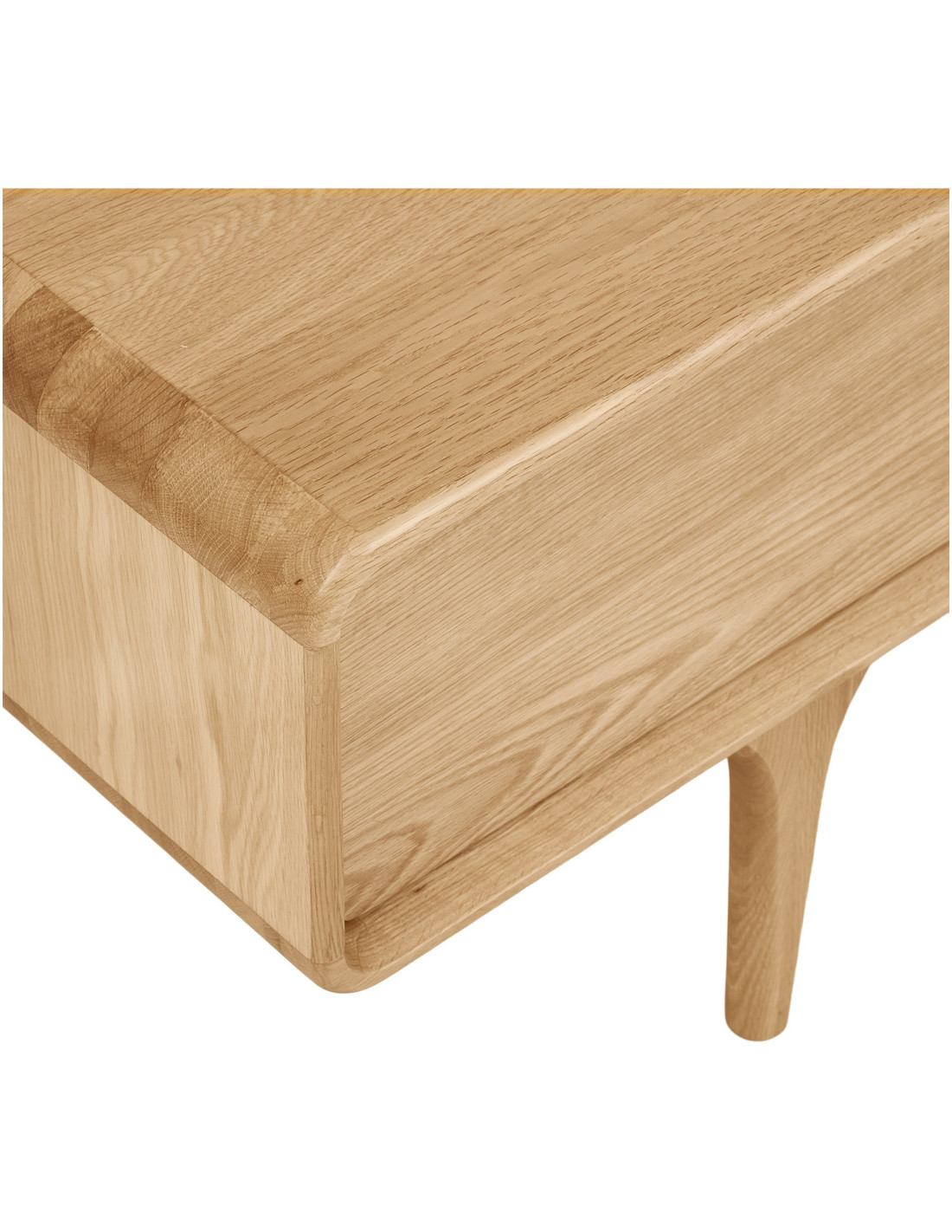 Le chêne est reconnu pour sa résistance et sa longévité. Le placage permet de conserver un rendu naturel tout en améliorant la stabilité du meuble.