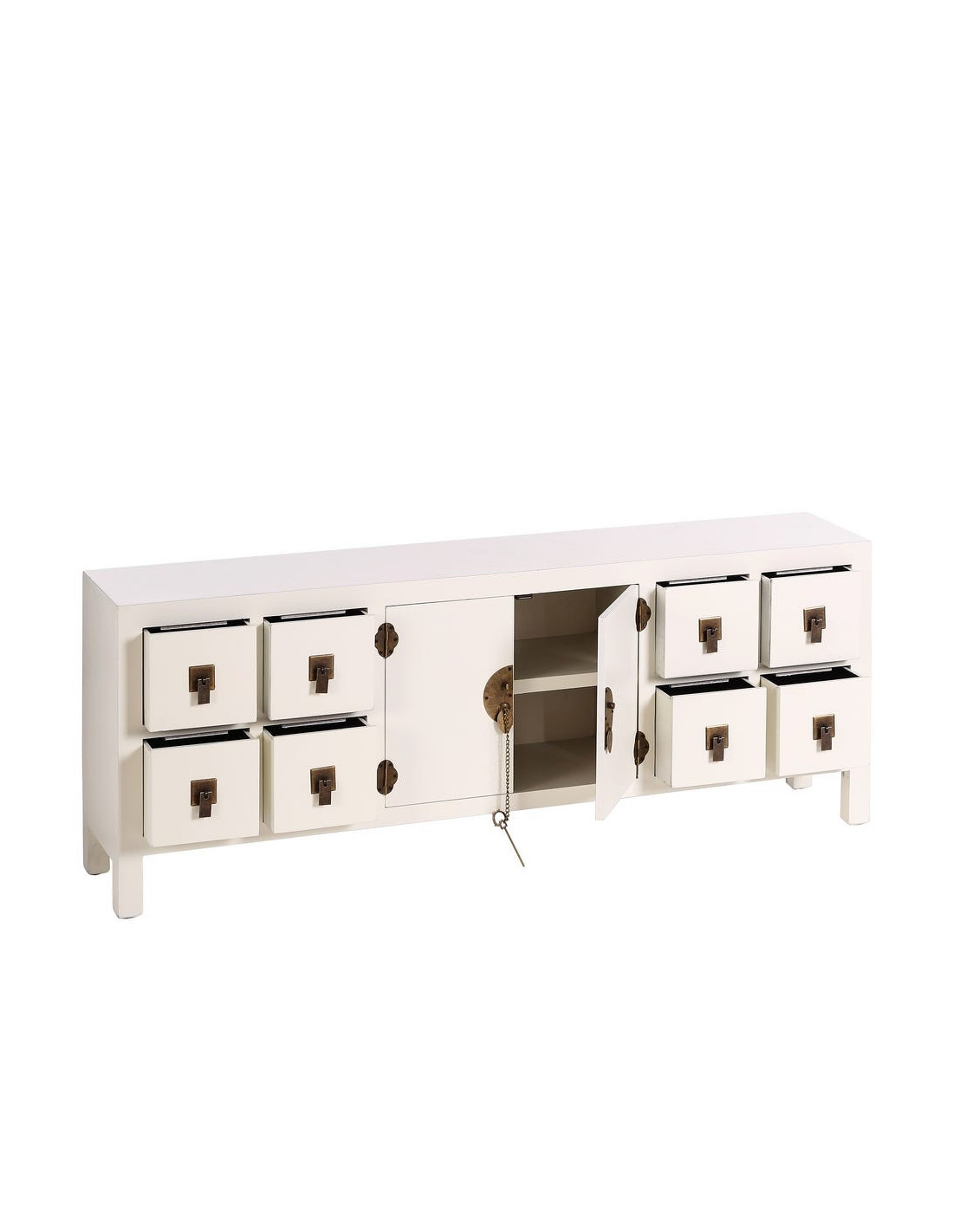 Meuble Tv 2 portes 8 tiroirs en Bois Blanc Oriente - 1