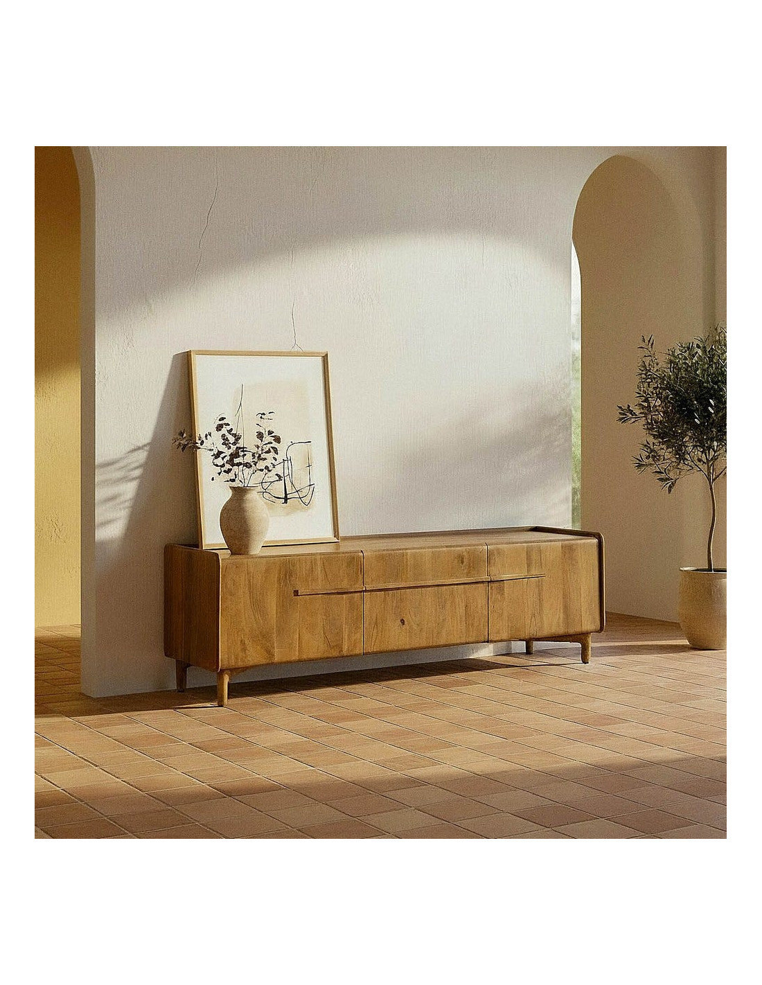 Meuble TV Japandi 3 portes 160 cm Naturel Galt
