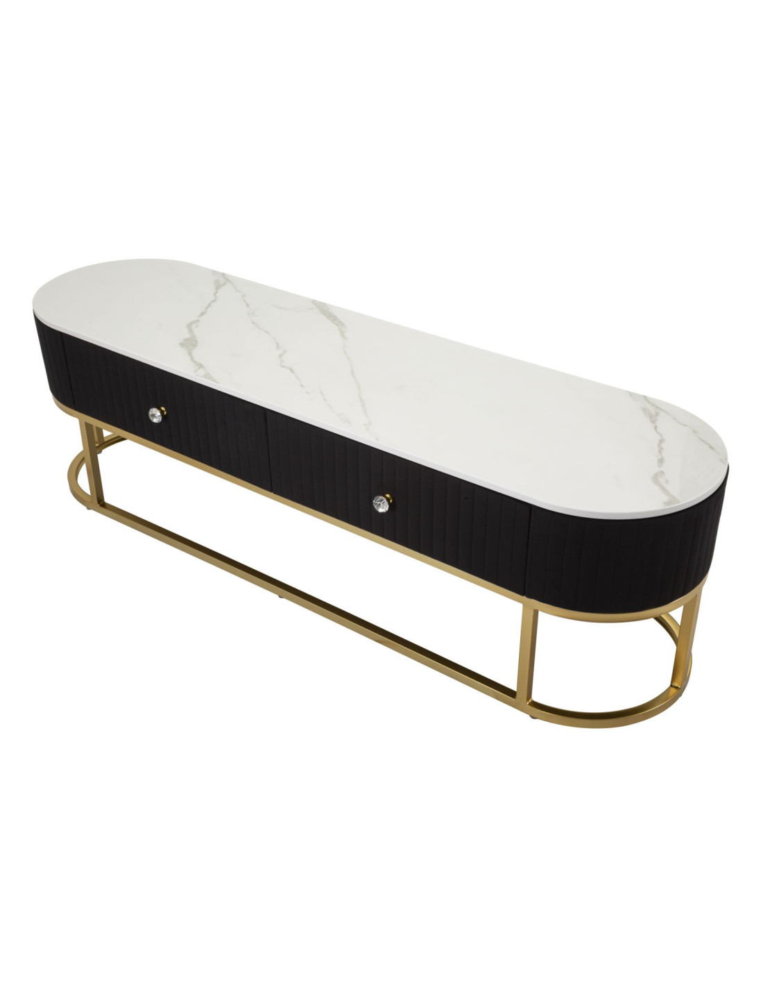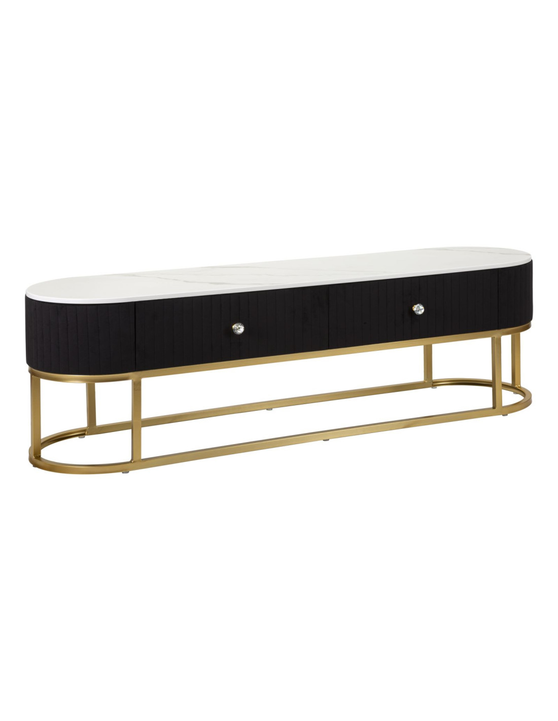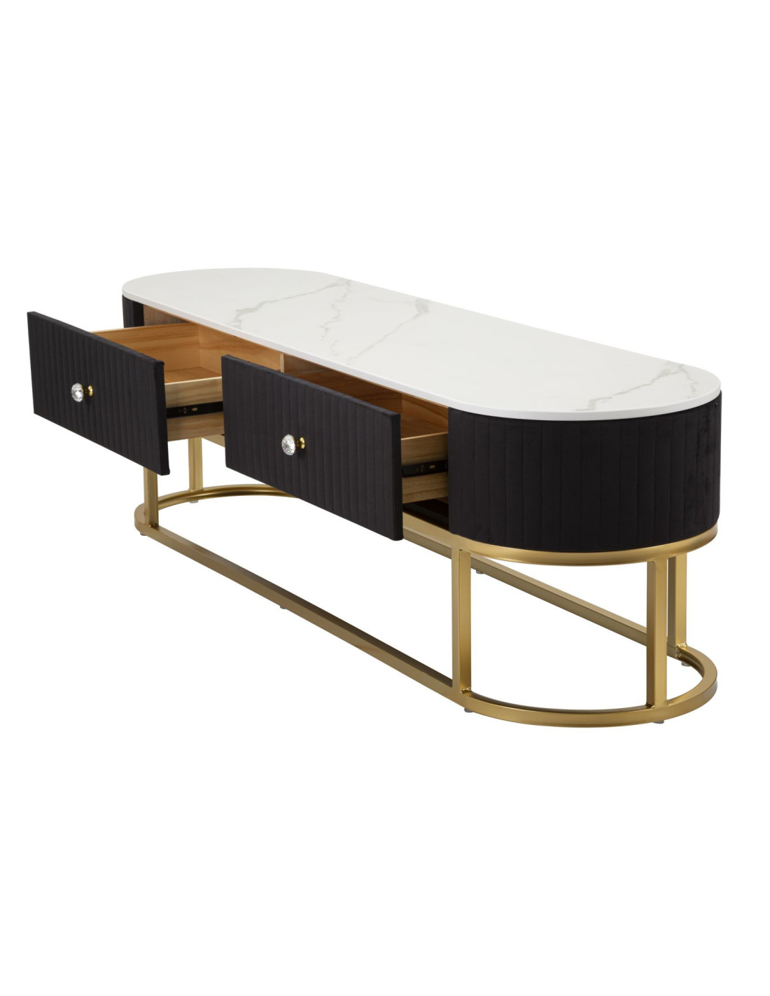 Meuble tv moderne 2 tiroirs en Velours Noir Métal Doré Bois Blanc Effet marbre Montpellier
