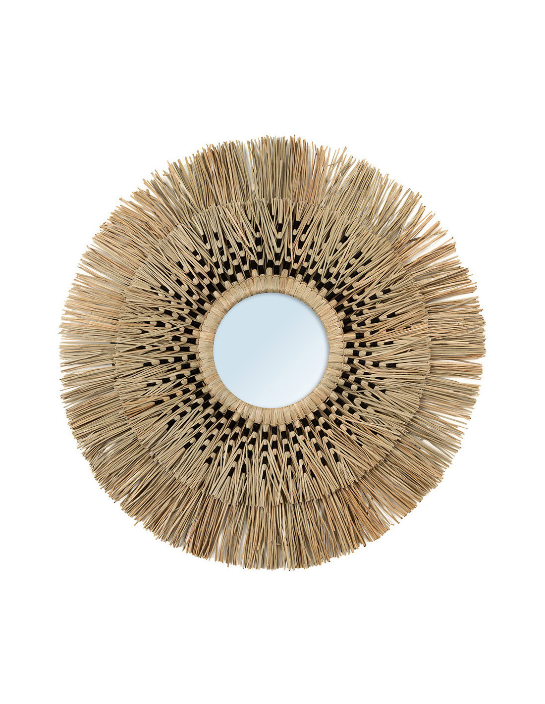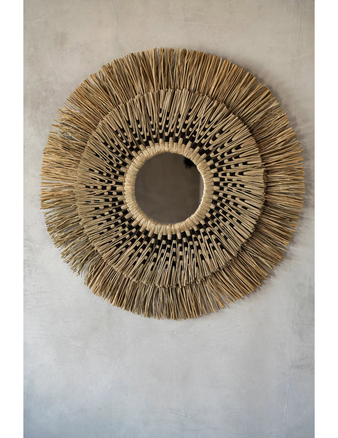 Miroir mural Bohème chic Rond 70x70 en Herbe Naturel Coton Noir The Havana