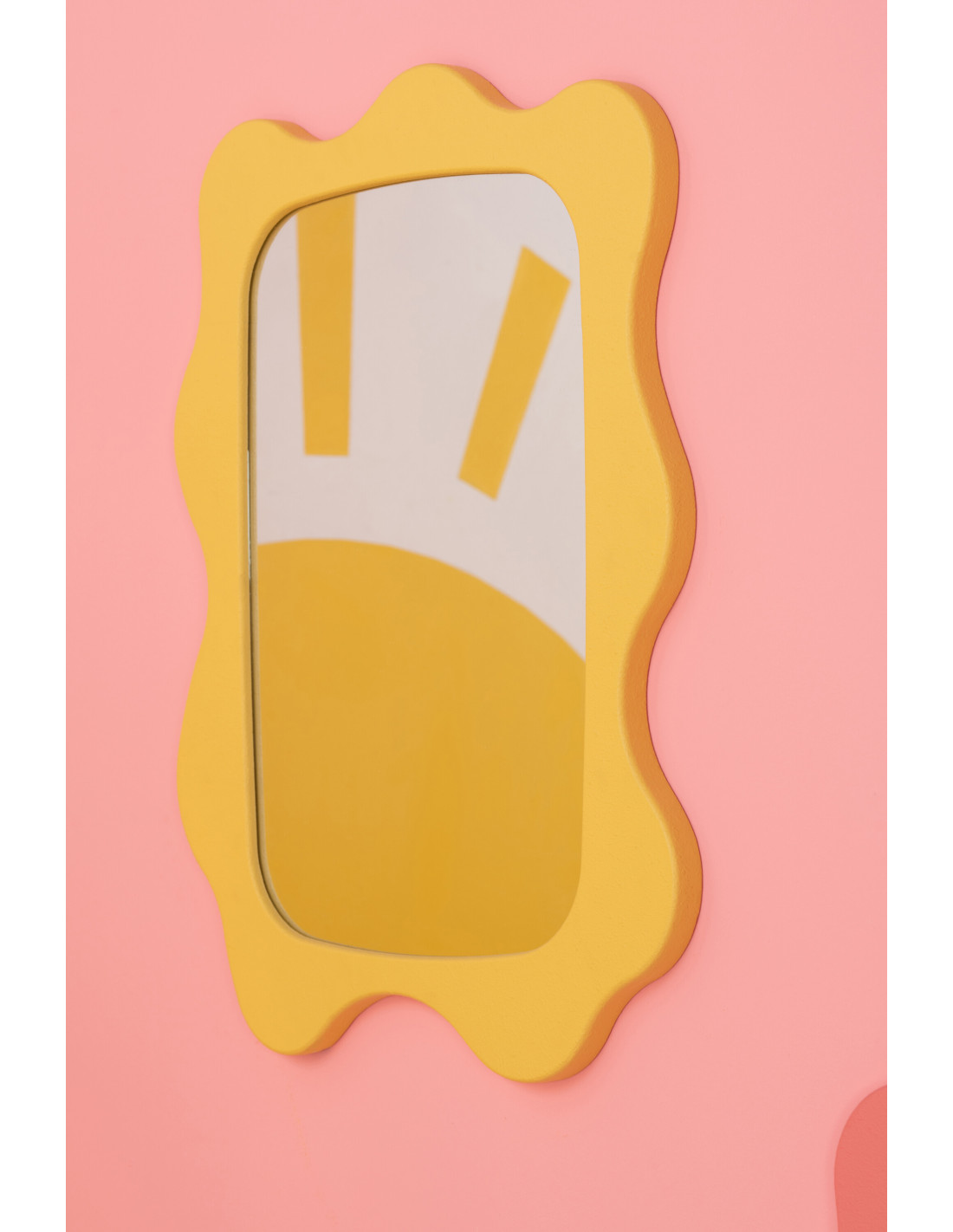 Miroir mural design Pop Vague Organique 57x76 Bois MDF Jaune Waviny