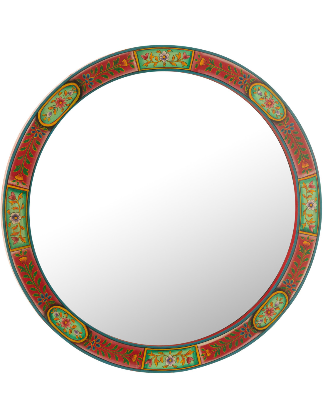 Miroir mural indien Rond 75x75 en Bois Rouge Vert Motif fleurs Mumbai