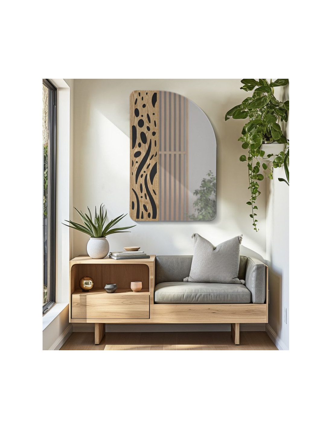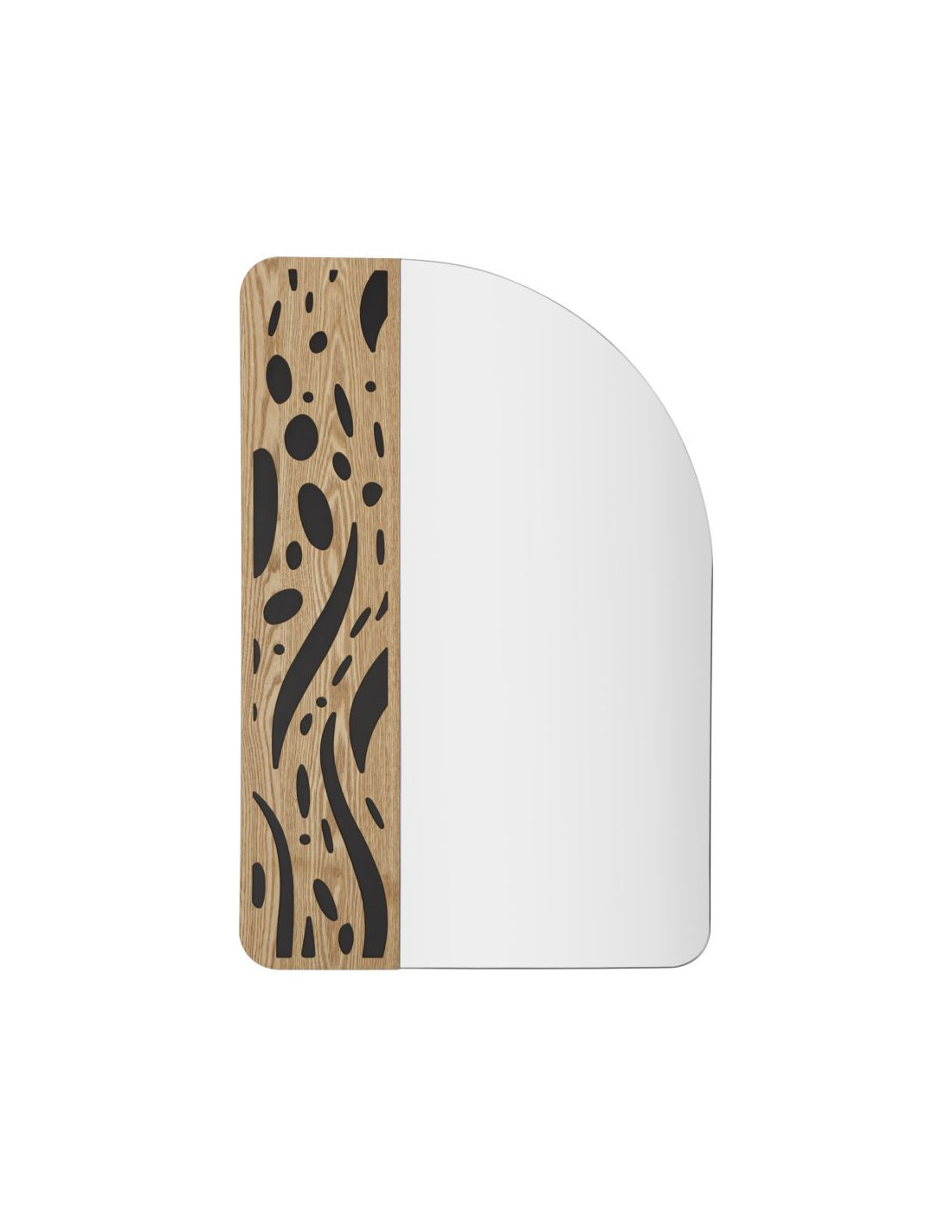 Miroir mural moderne Arrondi 60x90 en Bois de frêne Naturel Noir Terry