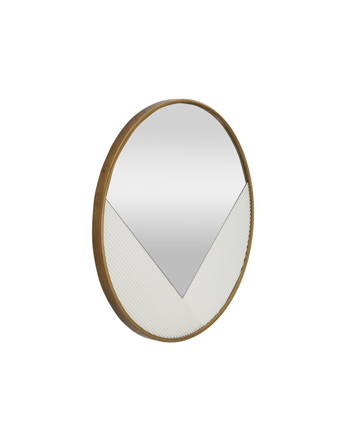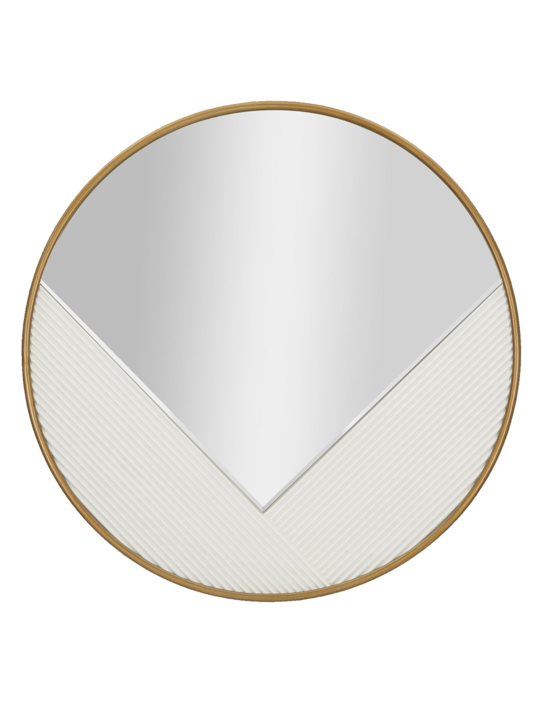 Miroir mural moderne XL Rond 80x80 en Bois Blanc Métal Doré Tolosa