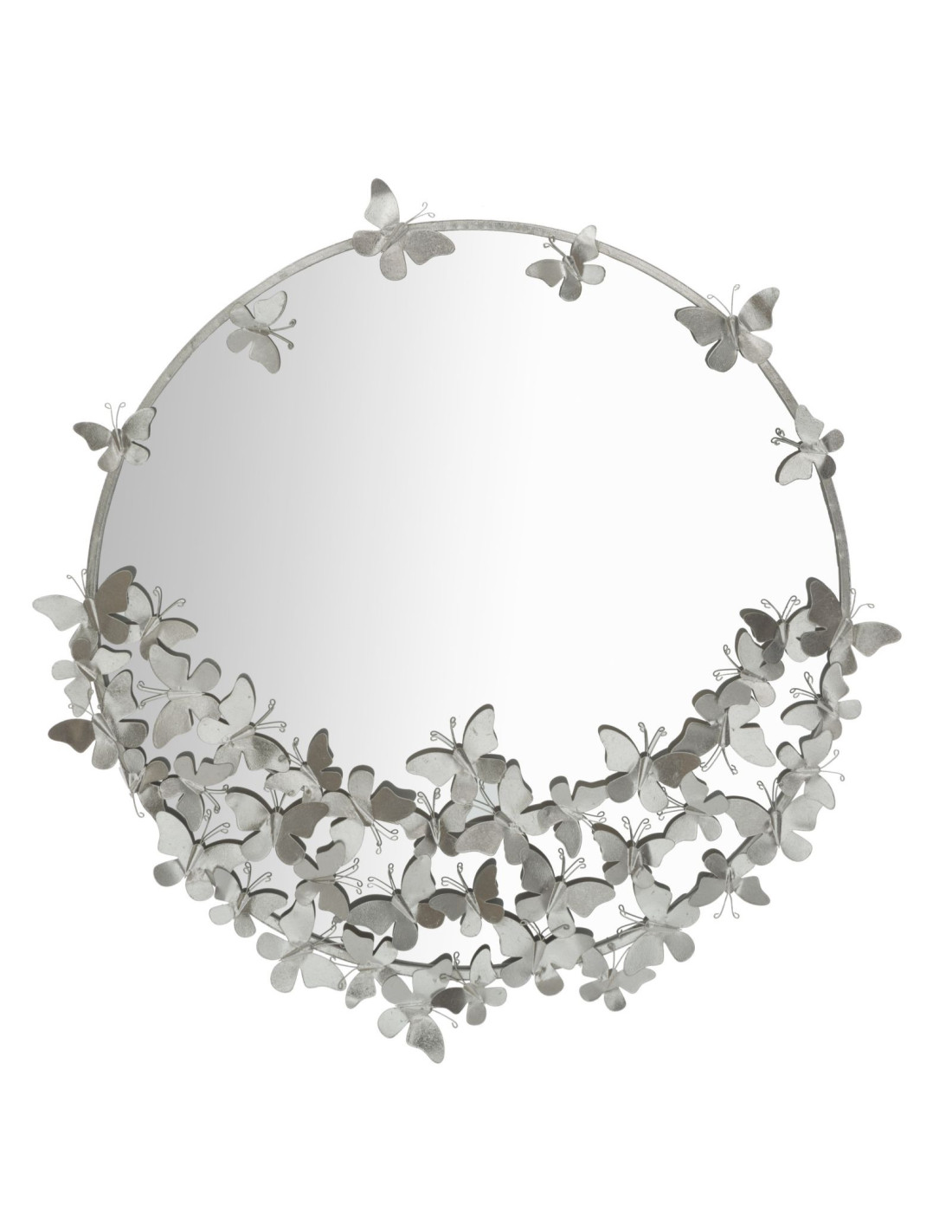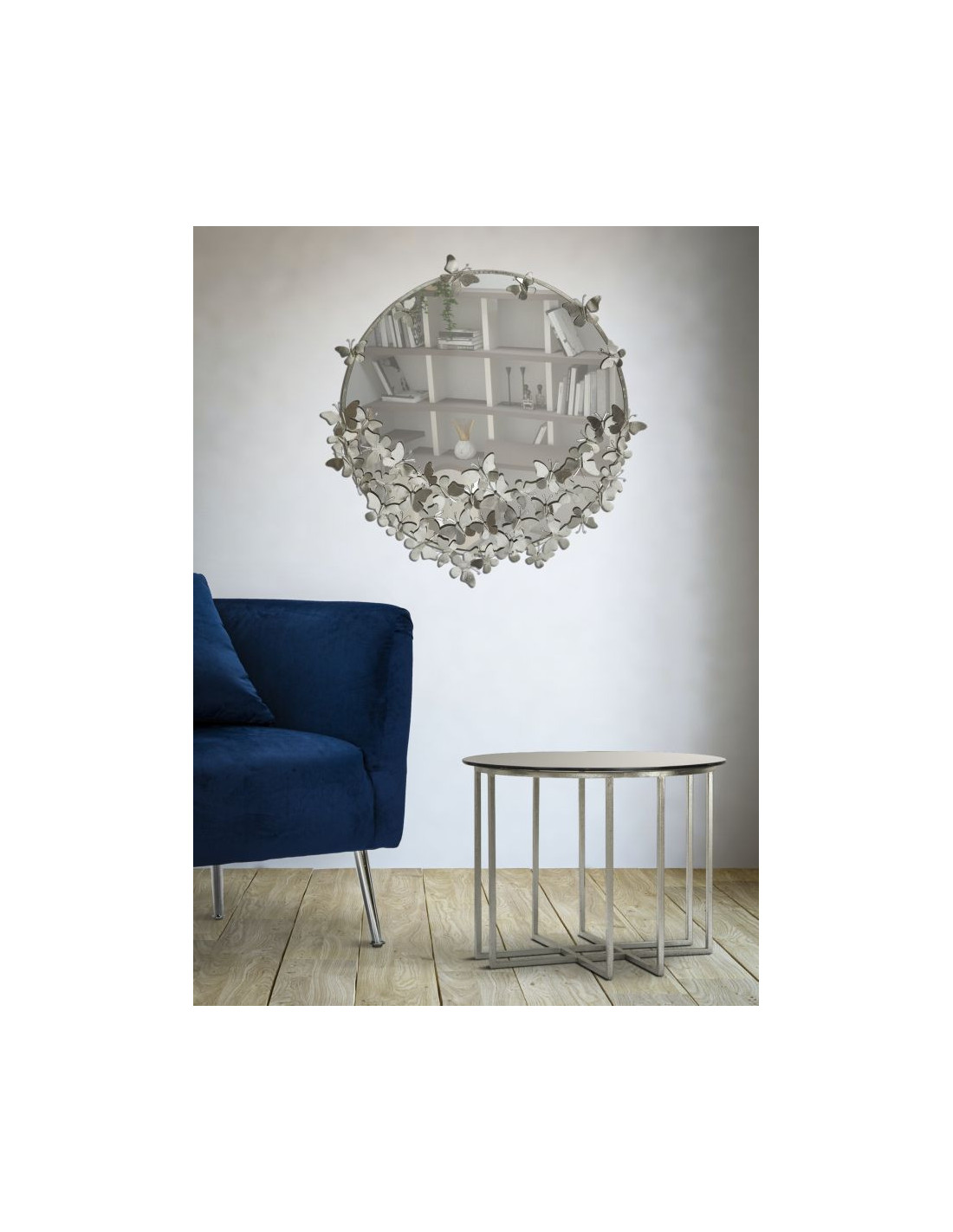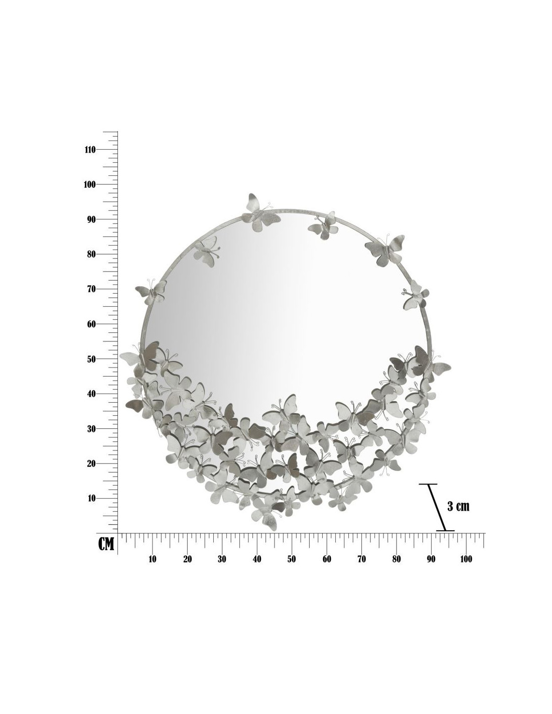 Miroir mural original Papillons XL Rond 91x94 en Métal Argenté Farfalle