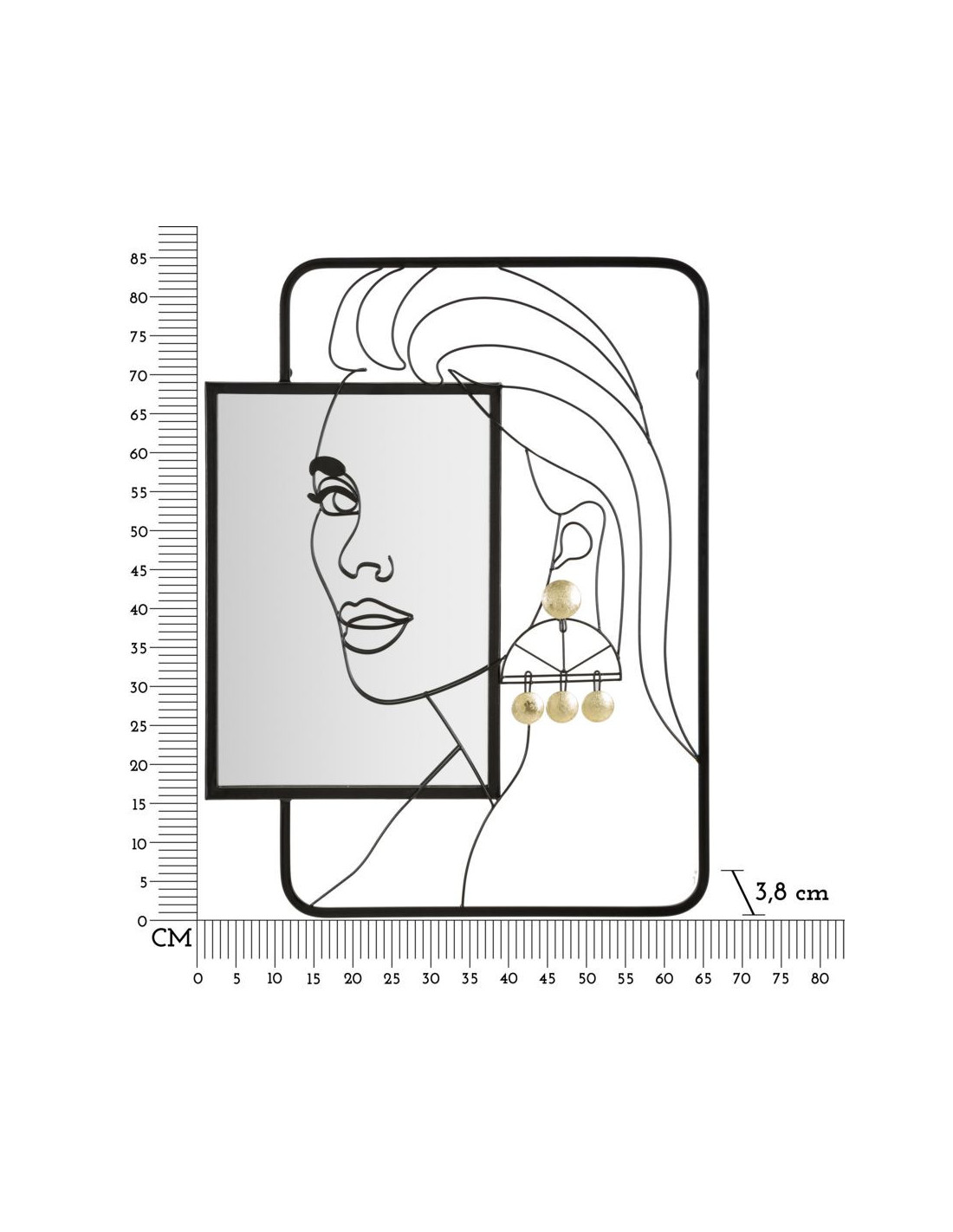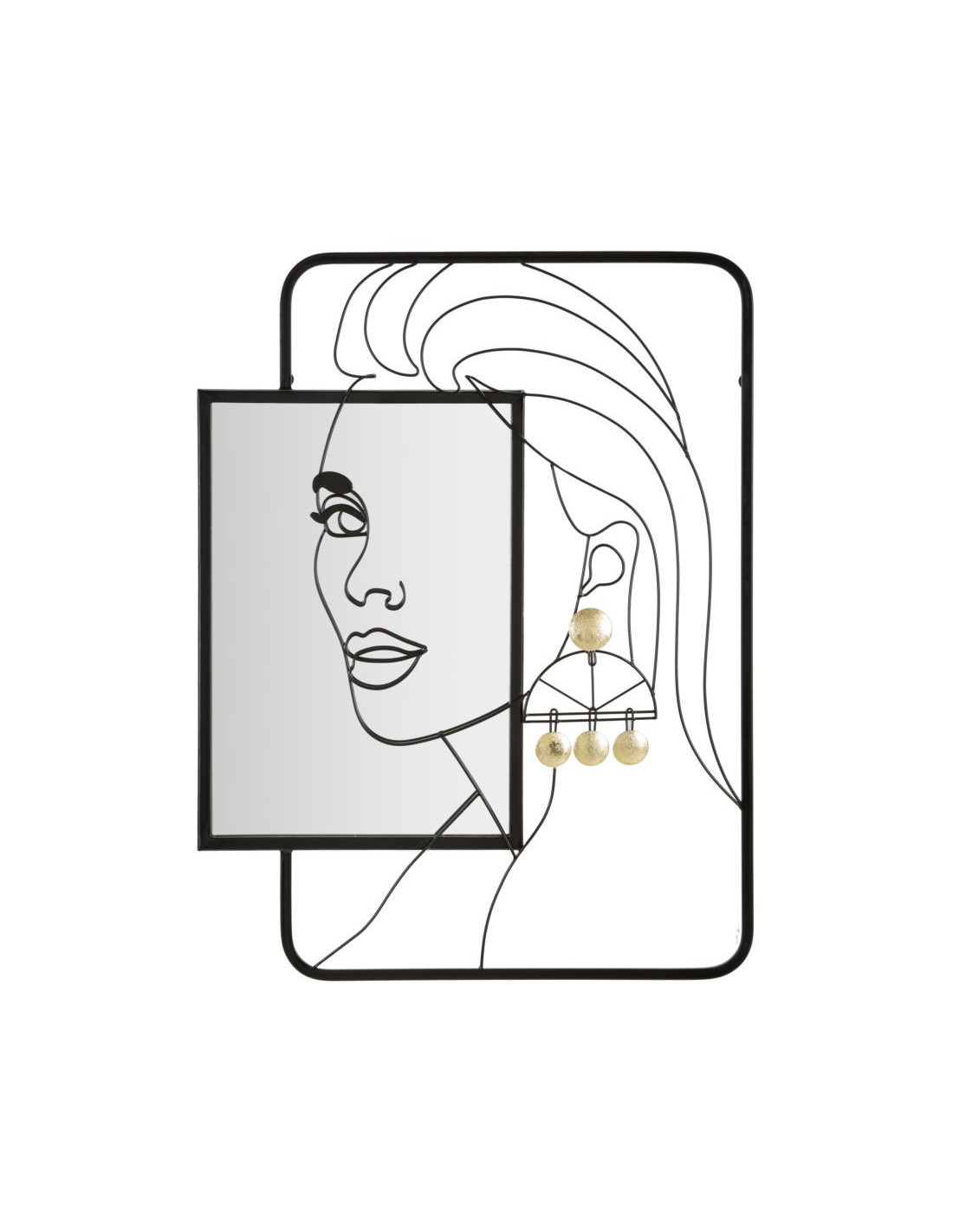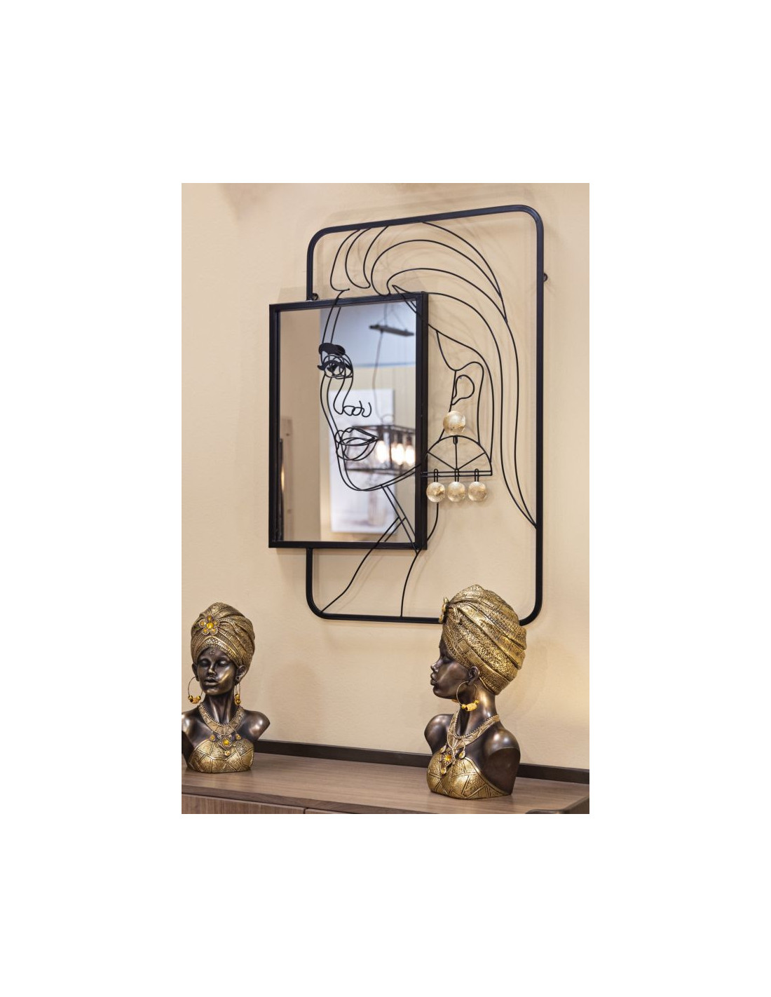 Miroir mural original Visage arty Rectangulaire 64x85 en Métal Noir Doré Eleonor