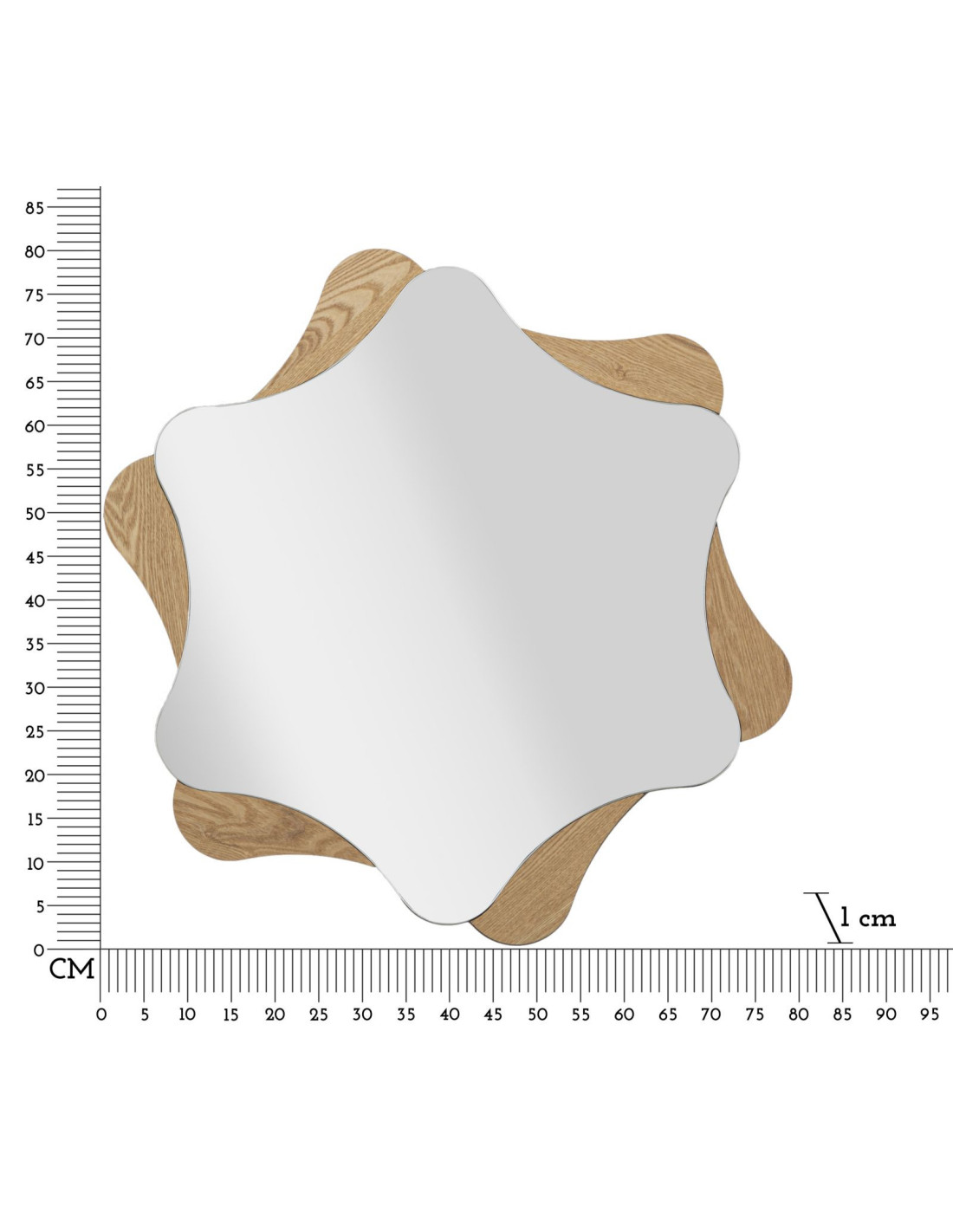 Miroir mural original XL Étoile 80x80 en Bois de frêne Naturel Star